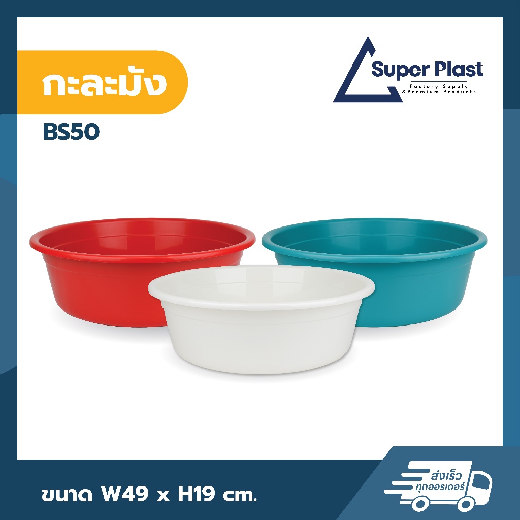 ♻️Super Plast กะละมังทรงกลม กะละมังซักผ้า กะละมังพลาสติก เนื้อหนา แข็งแรง ไม่แตกร้าวง่าย มีให้เลือก 3 สี BS-50