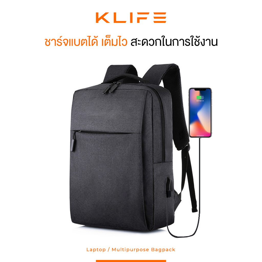 กระเป๋าเป้โน๊ตบุ๊ค กระเป๋าเป้สะพายหลัง KLIFE Notebook Laptop มีที่ชาร์จแบต กันน้ำ กันขีดข่วน