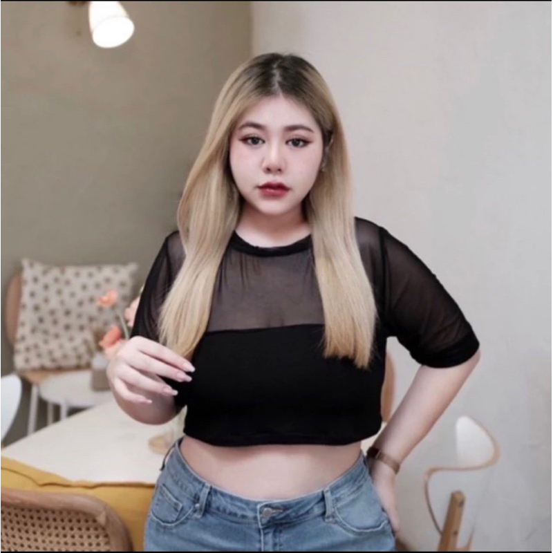 เสื้อครอปซีทรู ผ้าสเปนเดกซ์ ตัดต่อซีทรูตะข่ายเนื้อดี ไม่คัน ผ้าเนื้อนิ่ม เซ็กซี่ยั่วยวนสุดๆ สาวต้องมีติดตู้น๊า