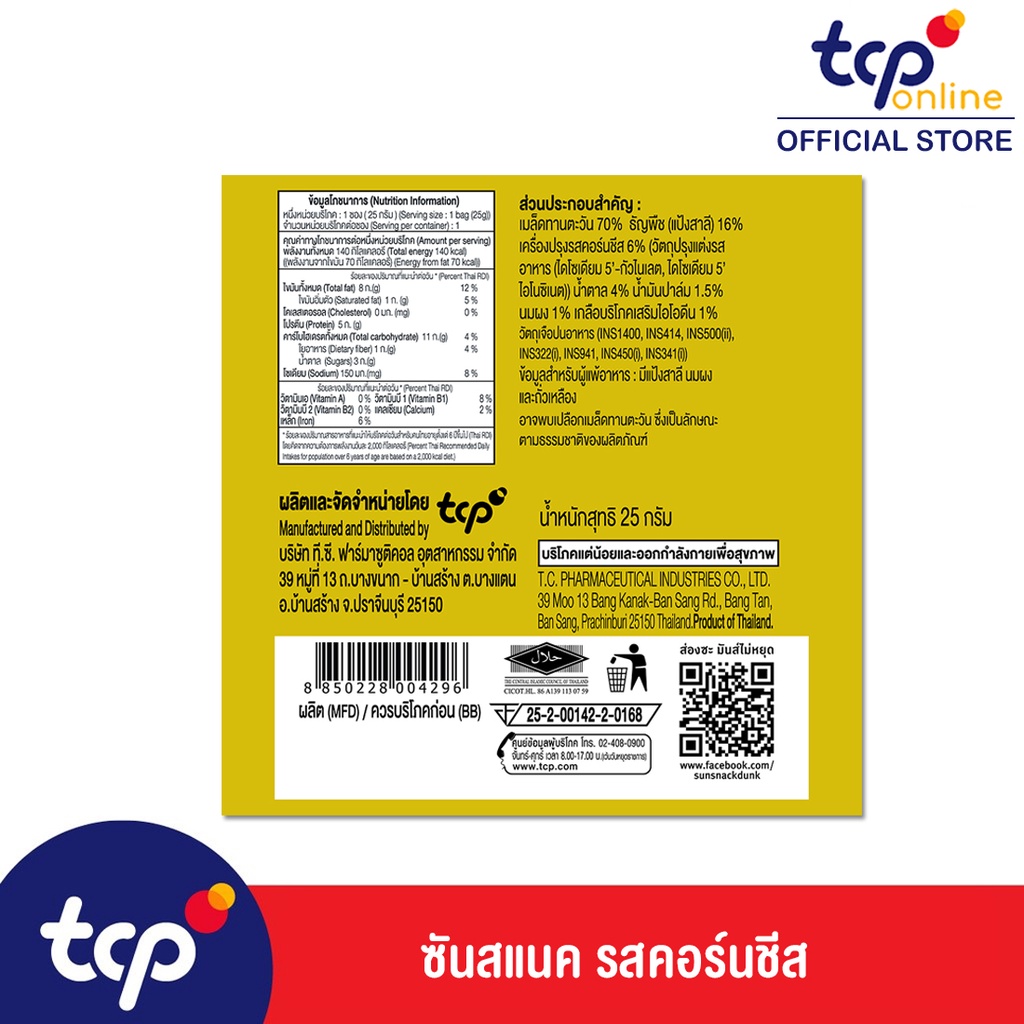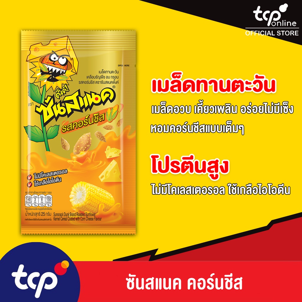 ซันสแนค รสคอร์นชีส 25 กรัม 3 แพ็ค (18 ซอง) Sunsnack Corn Cheese 25 g. Pack 18 (TCP) เมล็ดทานตะวัน อบกรอบ