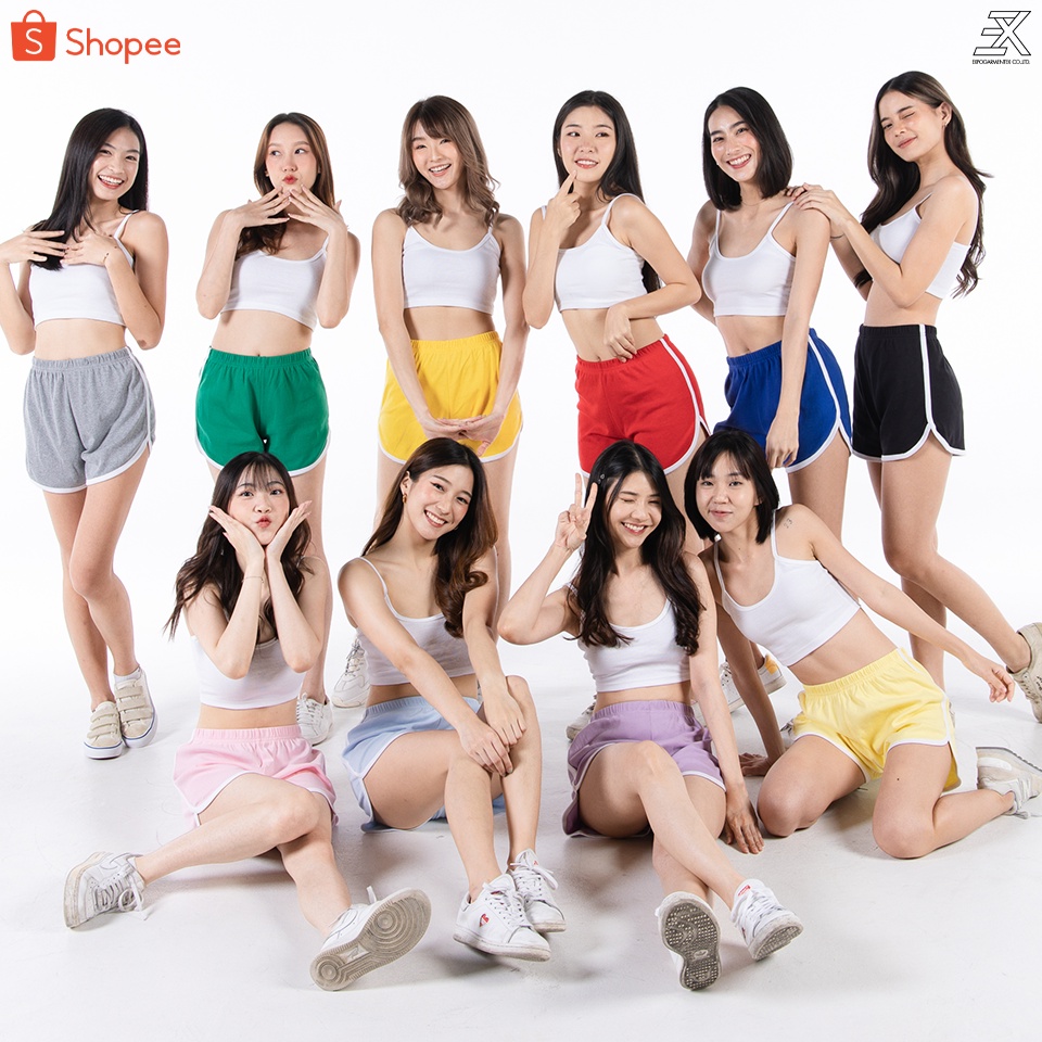 Expogarment กางเกงวอร์ม ขาสั้น แต่งแถบ เอวสูง เอวยางยืด กางเกงขาสั้น เอิร์ธโทน พาสเทล 12 สี