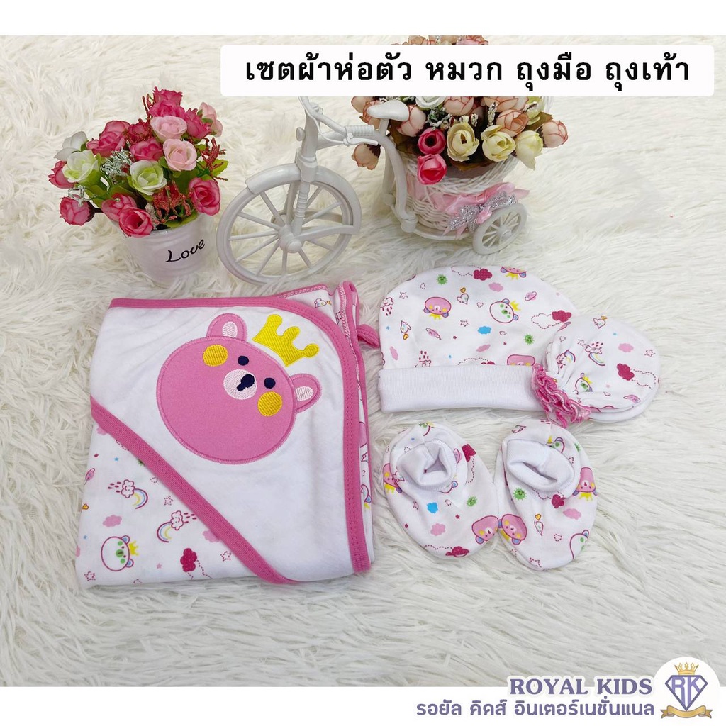 C0045 Set 6 ชิ้น ผ้าห่อตัวเด็กผืนใหญ่ หมวกเด็ก ถุงมือ ถุงเท้าเด็ก ผ้าห่อตัวเด็กแรกเกิด ผ้าห่มเด็ก