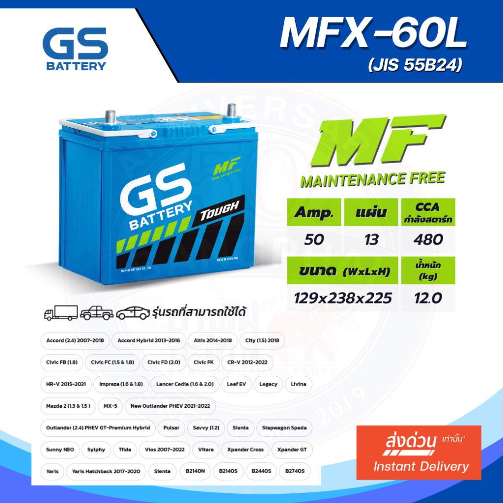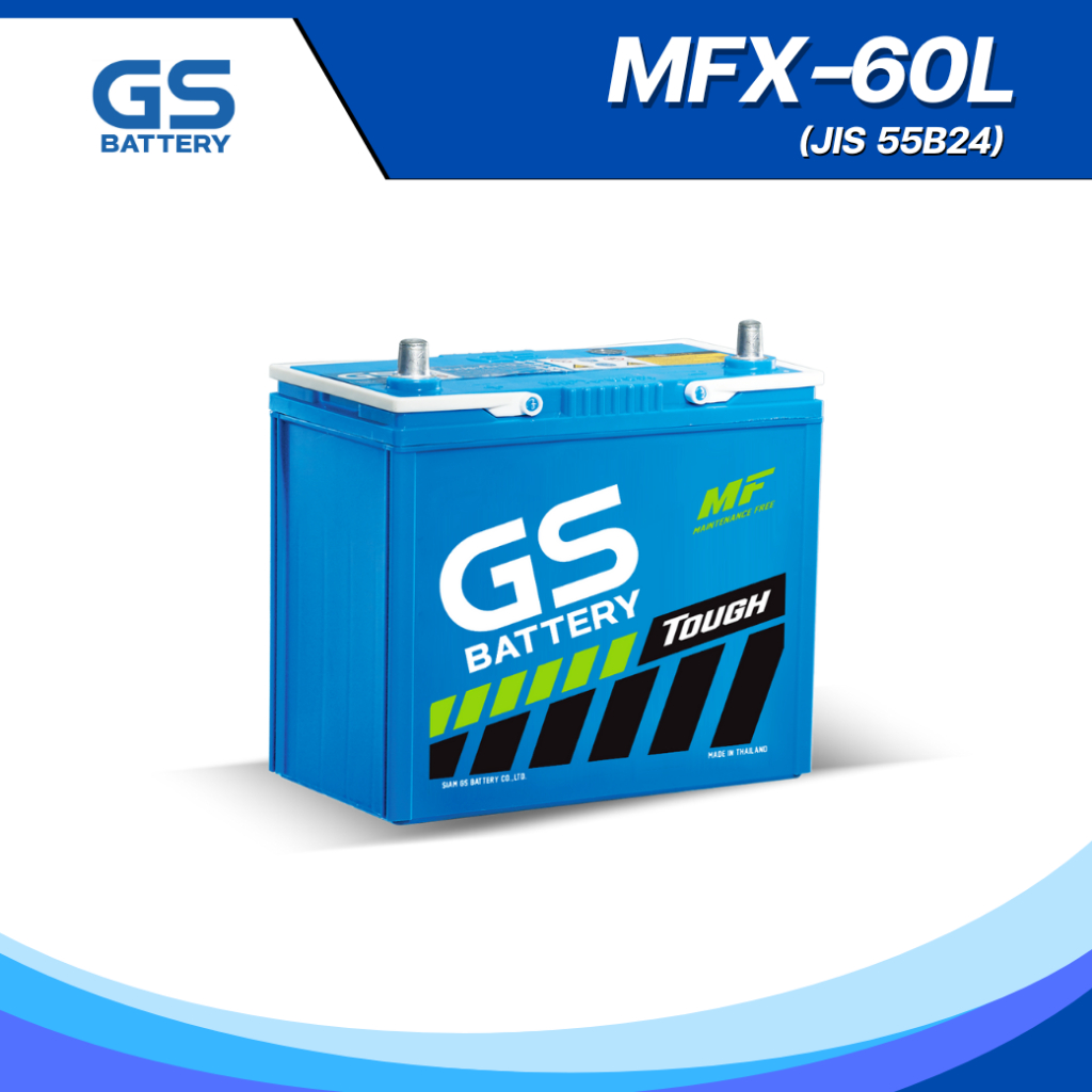 GS MFX-60L แบตเตอรี่รถยนต์ GS BATTERY 50 แอมป์ (JIS 55B24) MFX ชนิดพร้อมใช้งาน ไม่ต้องเติมน้ำกลั่น [แบตใหม่-พร้อมส่ง]