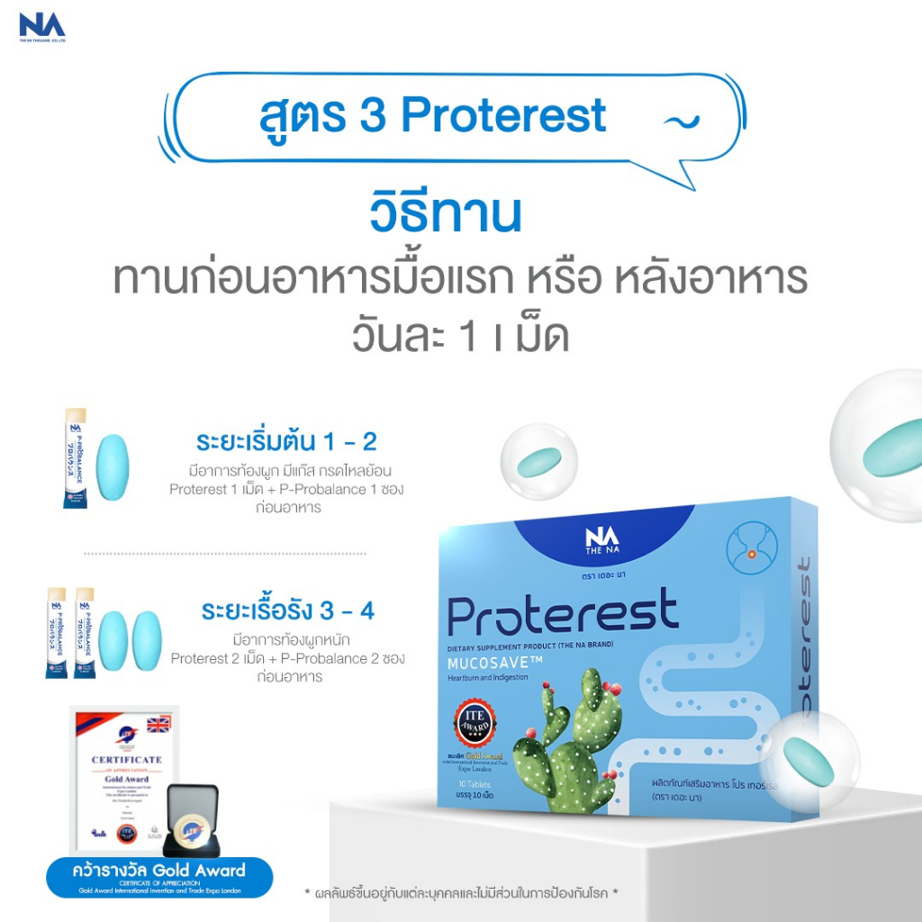The Na Proterest 1 กล่อง 10 เม็ด แสบ ร้อนกลางอก กรดไหลย้อน กระเพาะ ขับลม ย่อยอาหารสมุนไพร ขับถ่ายดี