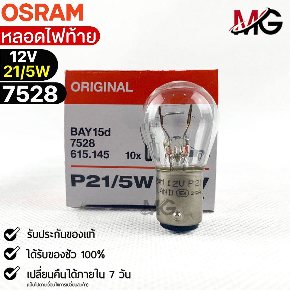 หลอดไฟท้าย Osram P21/5W 12V 21/5W ( จำนวน 1 กล่อง 10 ดวง ) ออสแรม รหัส 7528