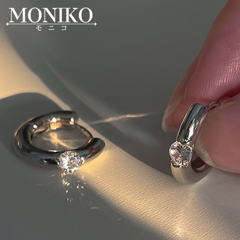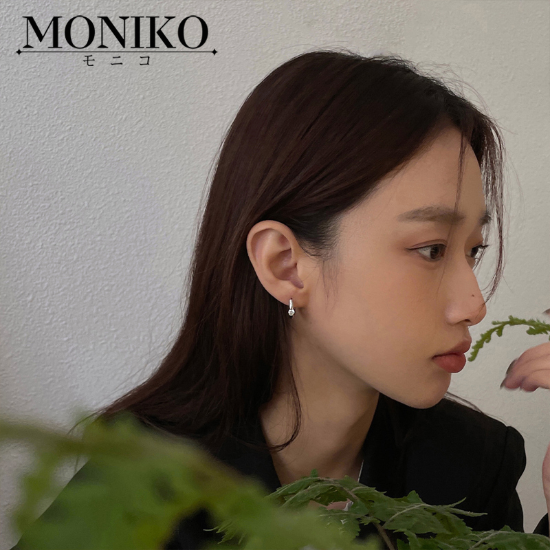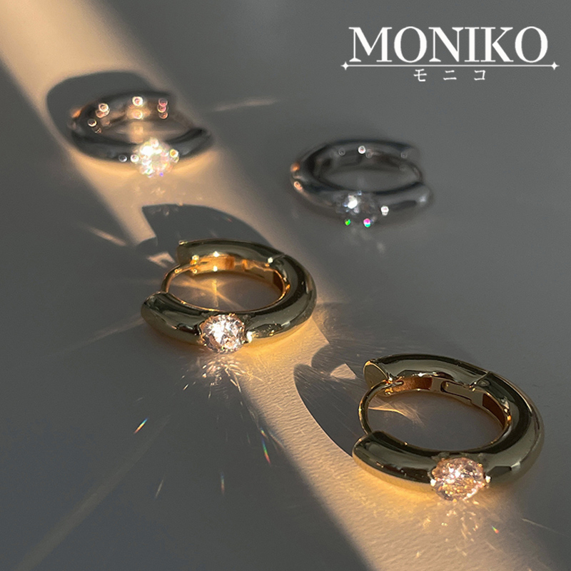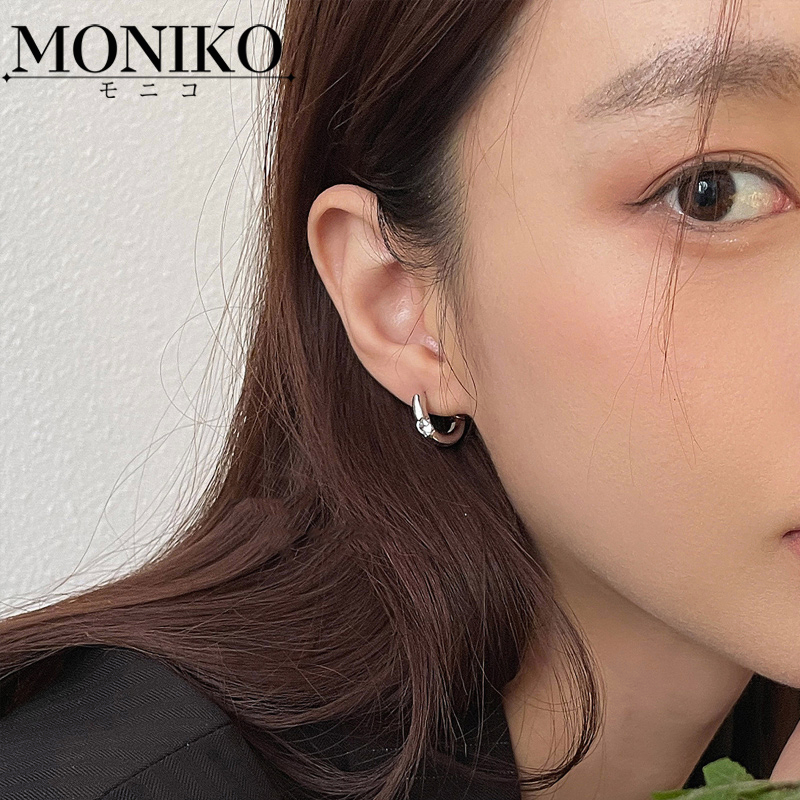 MONIKO ต่างหูโลหะ ประดับเพทาย ขนาดเล็ก สวยหรู สําหรับผู้หญิง