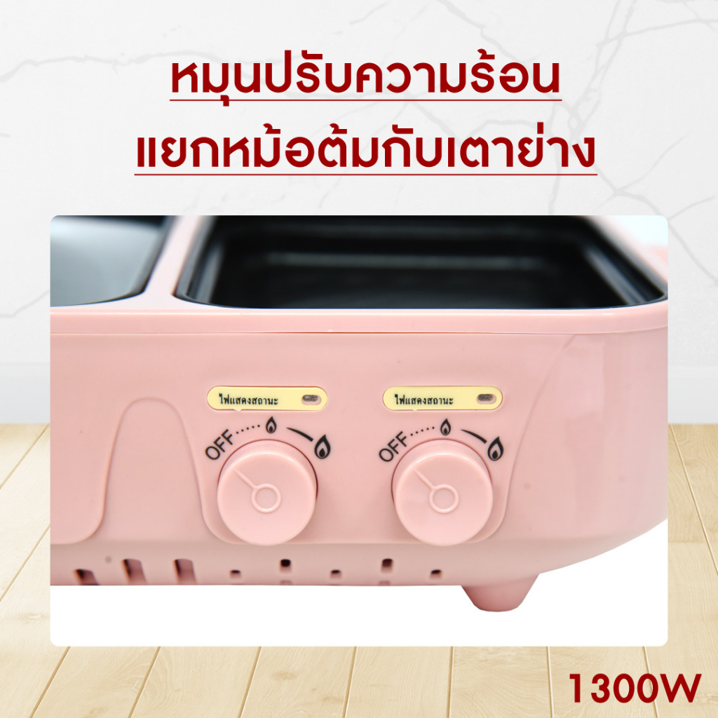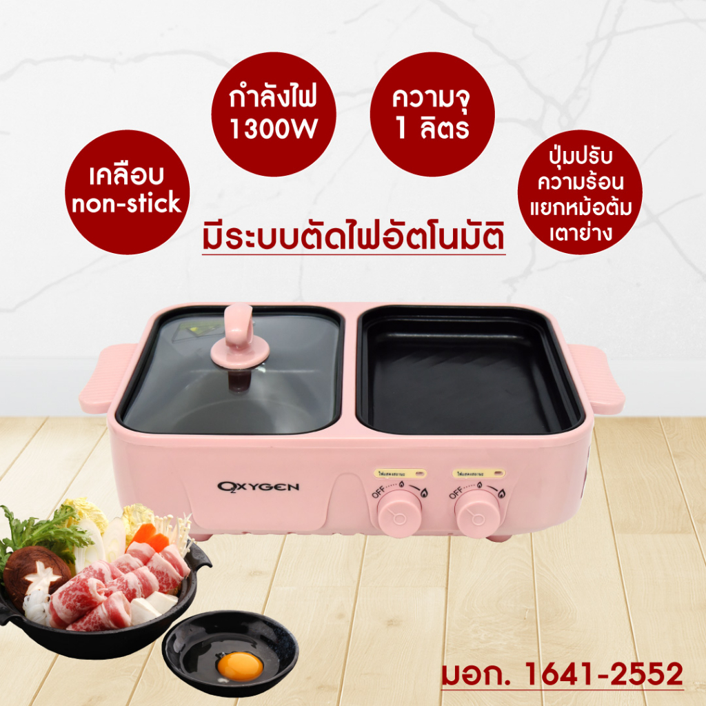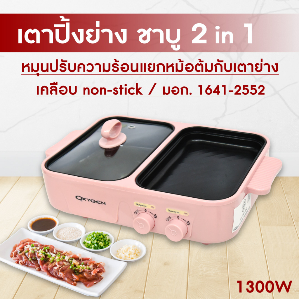 Oxygen เตาย่างพร้อมหม้อต้ม หม้อมินิไฟฟ้า รุ่น KW-307(สีชมพู) หม้ออเนกประสงค์