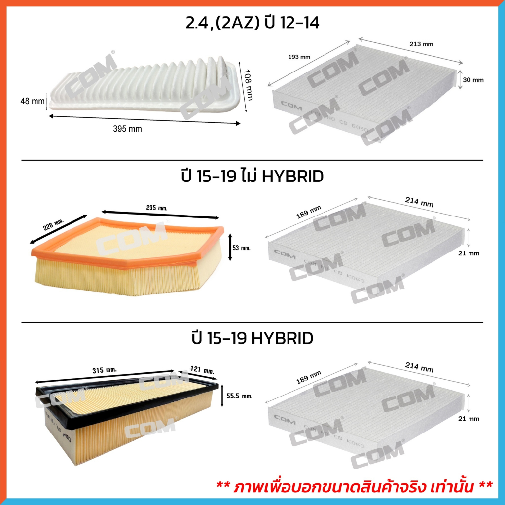 กรองอากาศ กรองแอร์ TOYOTA ALPHARD อัลพาร์ด, VELLFIRE เวลไฟเออร์ ปี2002-2021,HYBRID, ไส้กรอง COM