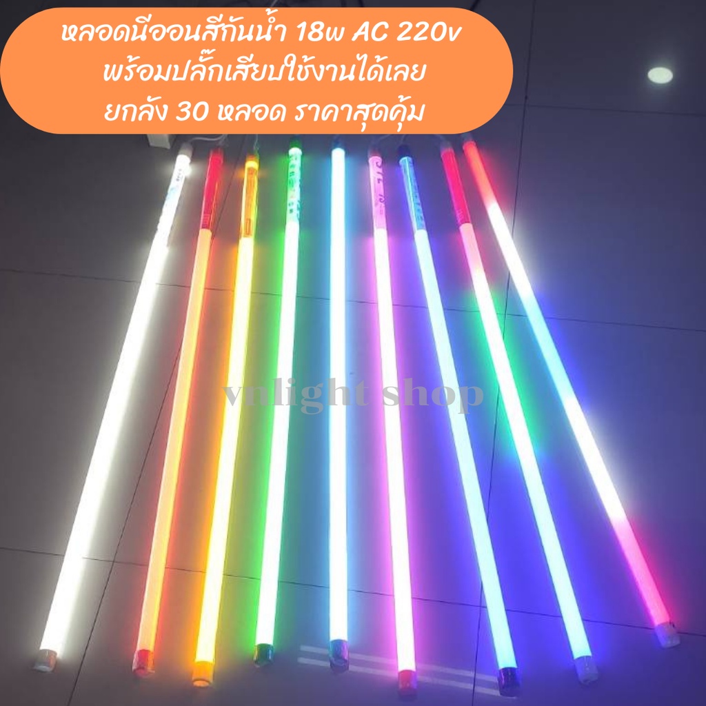 ยกลัง 30หลอด หลอดไฟสีกันน้่ำพร้อมปลี๊กเสียบ ไฟงานวัด ไฟประดับ led 18w ยาว 1.20 ม AC 220v พร้อมใช้งาน
