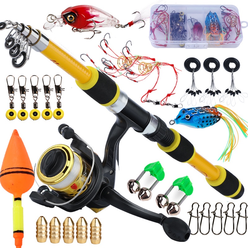 Sougayilang ชุดคันเบ็ดตกปลา แบบพกพา 1.8 เมตร รอกสาย ล่อคอมโบ คันเบ็ดยืดไสลด์ ครบชุด