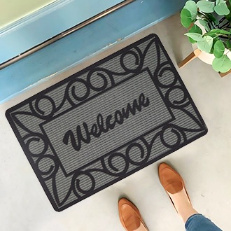 พรมเช็ดเท้า พรมหน้าบ้าน ดักฝุ่น ขนาด40CM×60CM ลายwelcomeขอบ ลายรังผึ้ง PVCคุณภาพดี