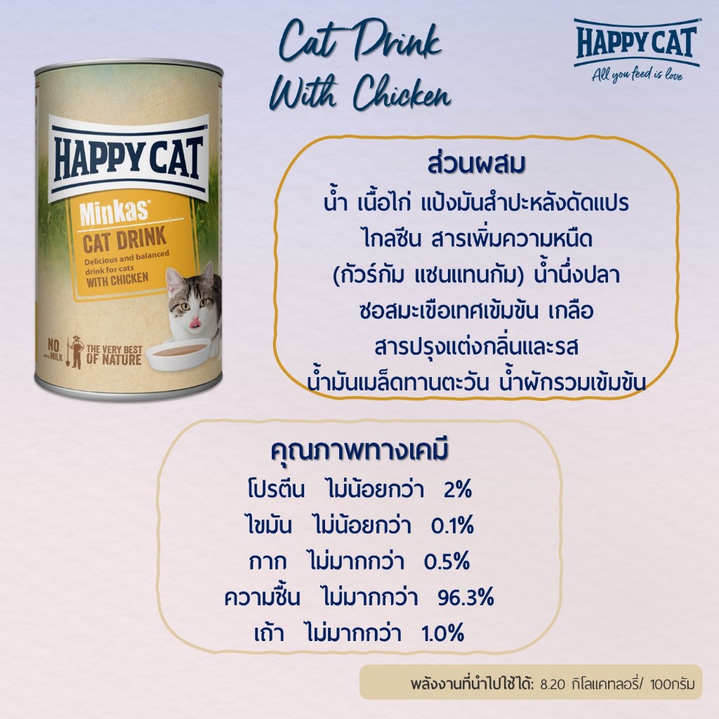 HAPPY CAT Minkas Cat Drink With Chicken สำหรับแมวโต เนื้อไก่แท้ 135 ml