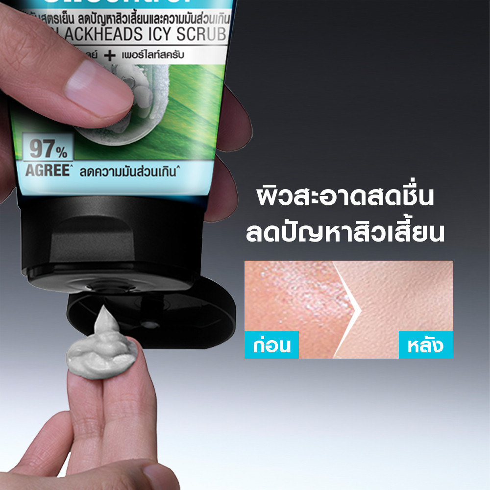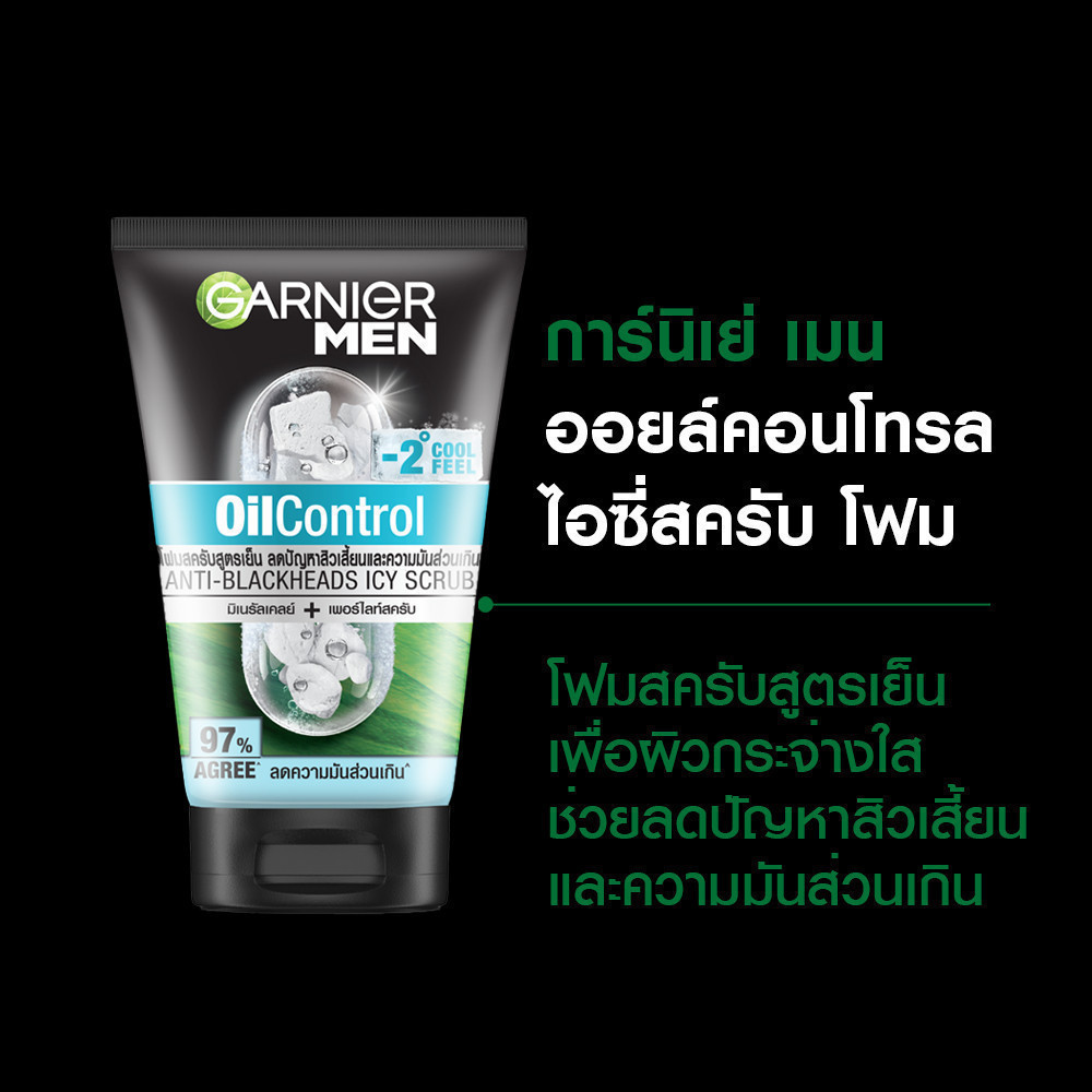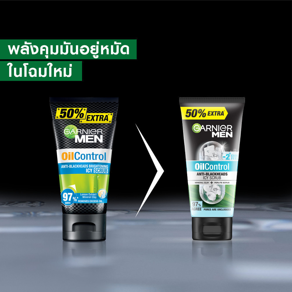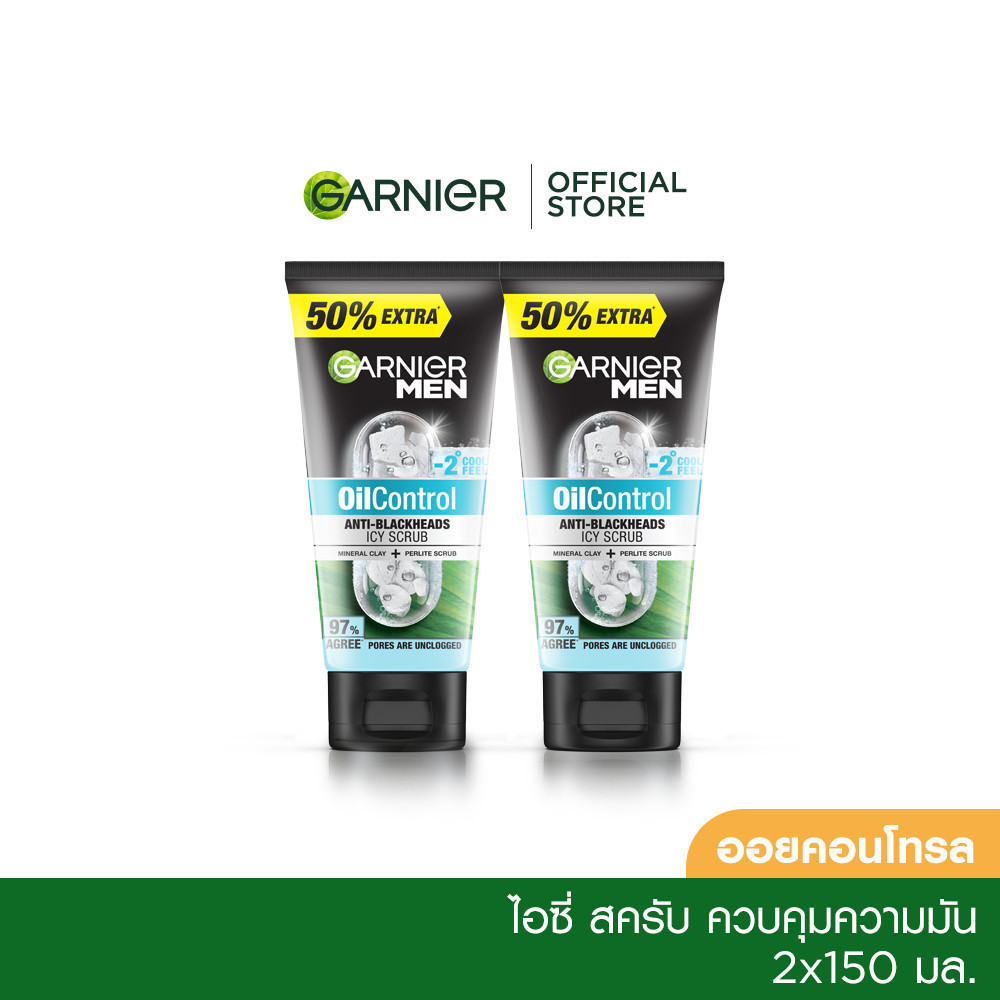การ์นิเย่ เมน ออย คอนโทรล แอนตี้-แบล็คเฮด ไบรท์เทนนิ่ง สครับ 150 มล. 2 ชิ้น GARNIER MEN OIL CONTROL ANTI-BLACKHEADS BRIG