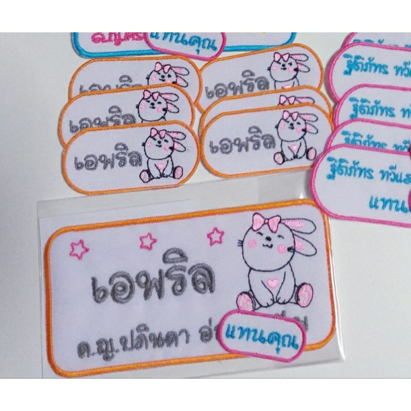 ป้ายชื่อติดที่นอนอนุบาล ขนาด 5X10 cm. (2 สี)
