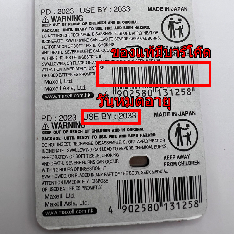 ถ่านกระดุม Maxell(มาเซล) แท้100% made in japan cr1220/cr1216/cr1632/cr1620/cr1616/cr2016/cr2032/cr2025/lr41/lr44/lr43