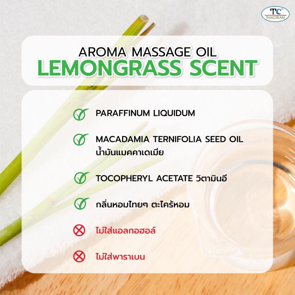 ไทยครีม 1ลิตร น้ำมันนวดตัวสปา กลิ่น ตะไคร้ อโรม่า spa thaicream aroma massage oil lemongrass scent