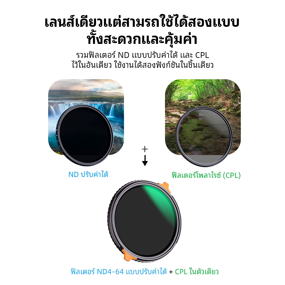 K&F CONCEPT 67mm NANO-X 2in1 ND4-64 & CPL Filter คมชัดสูง บางพิเศษ สำหรับวิวและบุคคล