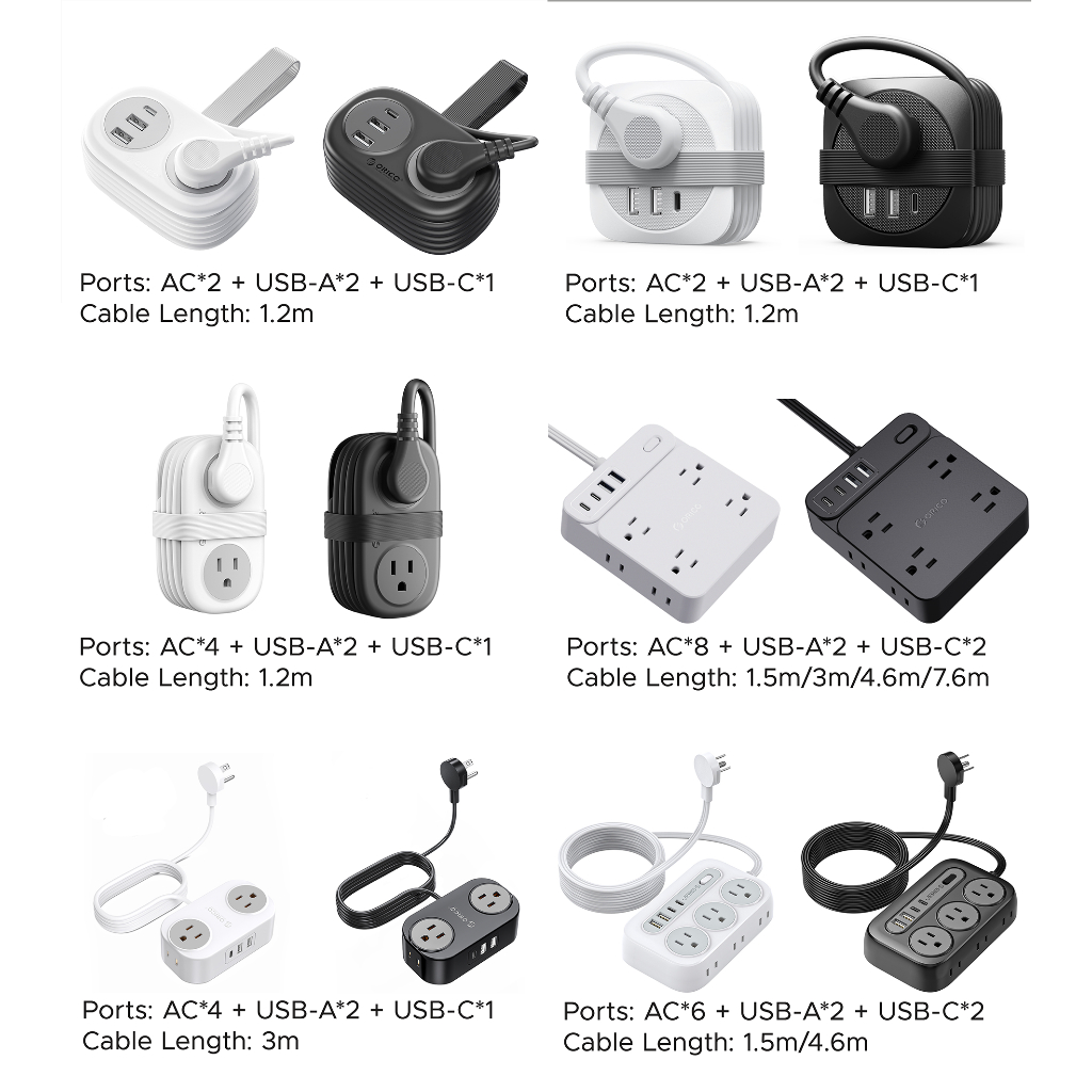 ORICO รางปลั๊กไฟ แท่นชาร์จแบบพกพาแบบอเมริกัน 45° สายต่อแบบพกพามุมสําหรับเดินทาง การป้องกันความปลอดภัยหลายตัว Home Travel PC สายไฟต่อสายไฟ (AP3)