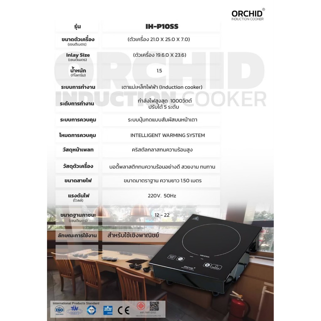 เตากล้วยไม้/เตาแม่เหล็กไฟฟ้าออคิด/เตาOrchid Induction cooker เตาร้านอาหาร ไลน์อุ่นบุฟเฟ่ต์ รุ่น IH-P10SS
