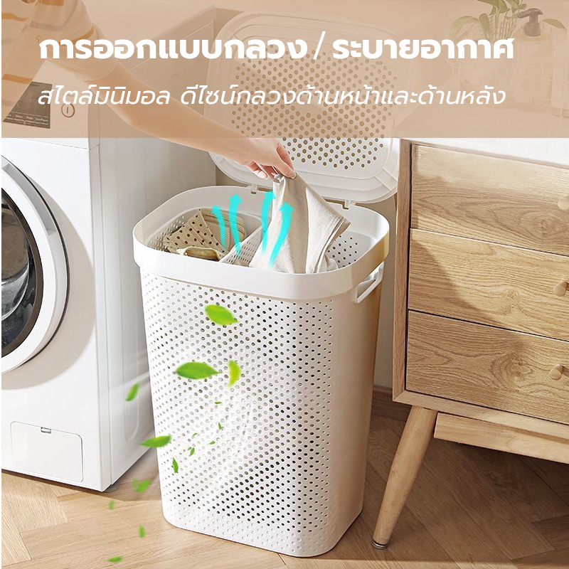 [พร้อมส่ง] 45L/60Lตะกร้าผ้ามีฝาปิด ตะกร้าอเนกประสงค์ ตะกร้าผ้าพลาสติกclothes basketความจุสูง จัดเก็บเสื้อผ้า