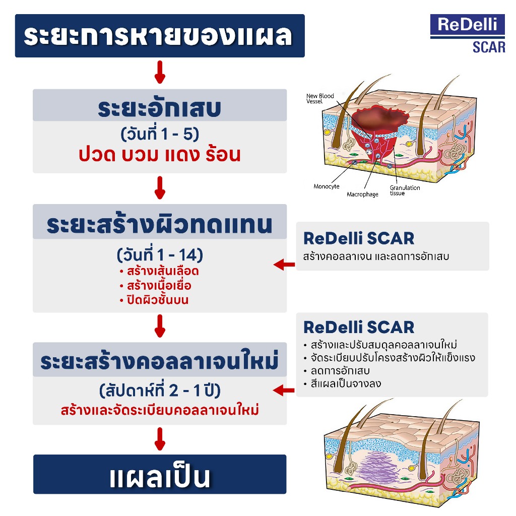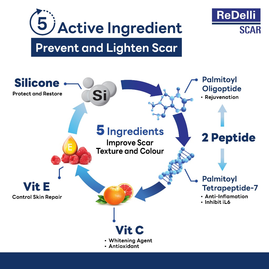 ReDelli SCAR ซิลิโคนเจล Silicone-Peptide ป้องกันรอยแผลเป็น ลด แดง นูน คัน คีลอยด์ ขนาด 18 g