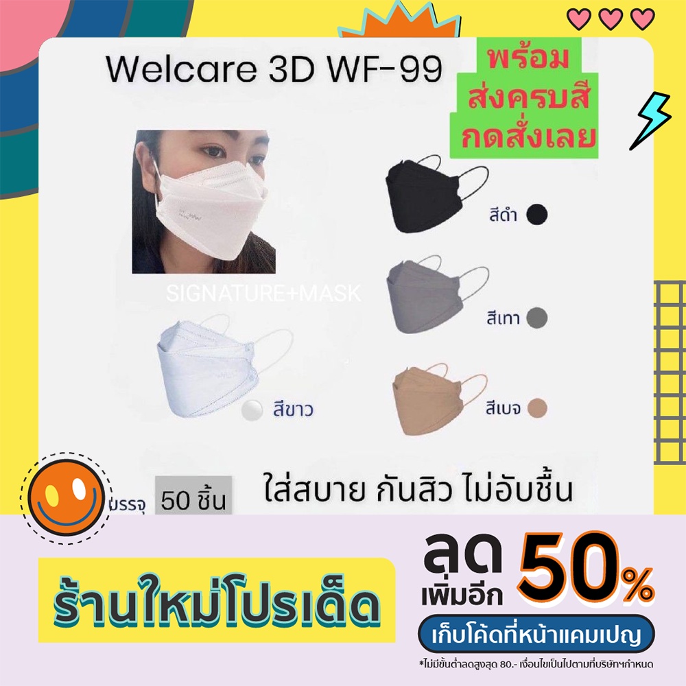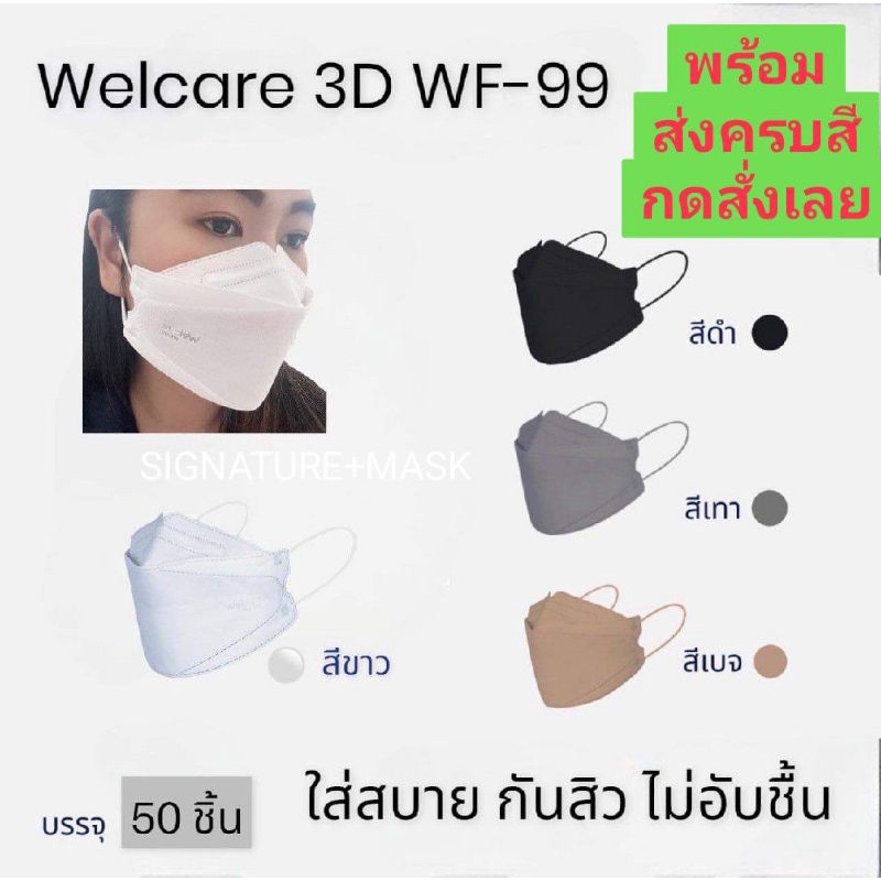 Welcare 3D Medicals Mask WF-99 หน้ากากอนามัยทางการแพทย์แบบกล่อง50ชิ้น