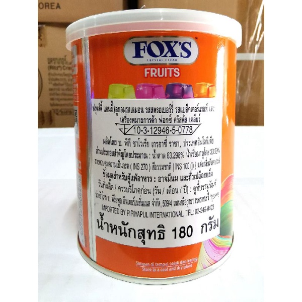 ถูกสุด‼️ลูกอม FOX'S กระป๋อง 180 กรัม ลูกอมรสผลไม้ ฟรุตส์ตี้ แคนดี้