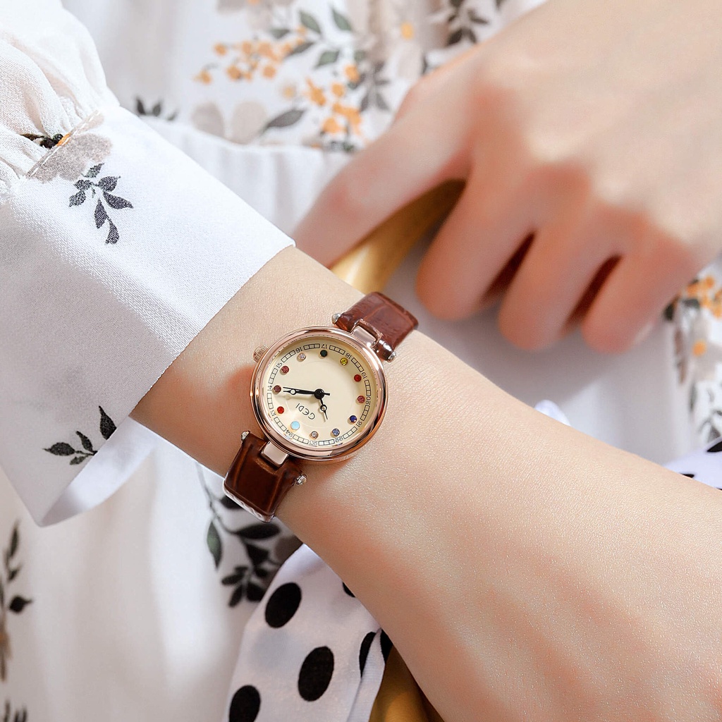 GEDI 51040 ✨มินิมอล พลอยหลากสี✨ สายหนัง จีดี้ ของแท้ 100% นาฬิกาแฟชั่น นาฬิกาข้อมือผู้หญิง