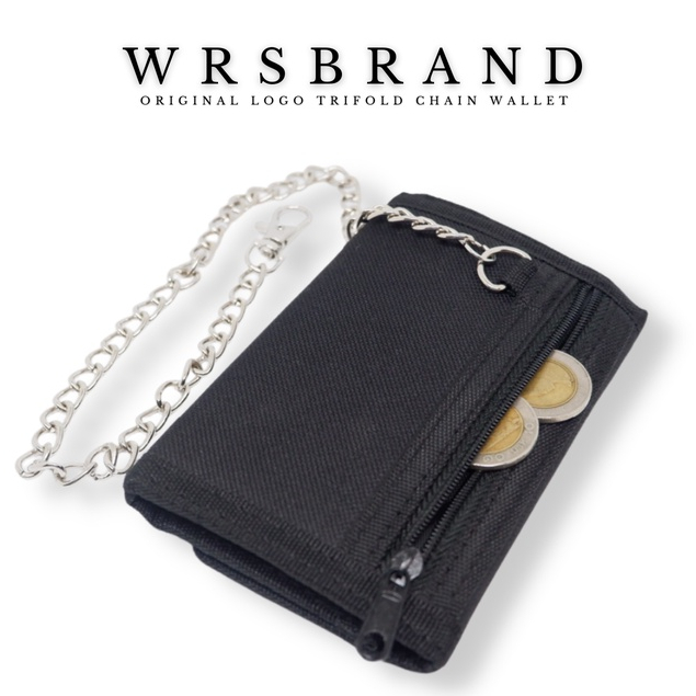 กระเป๋าสตางค์ 3 พับ สีดำ พร้อมกับโซ่ไว้คล้องกับกางเกงตัวโปรด WRS ORIGINAL LOGO TRIFOLD CHAIN WALLET