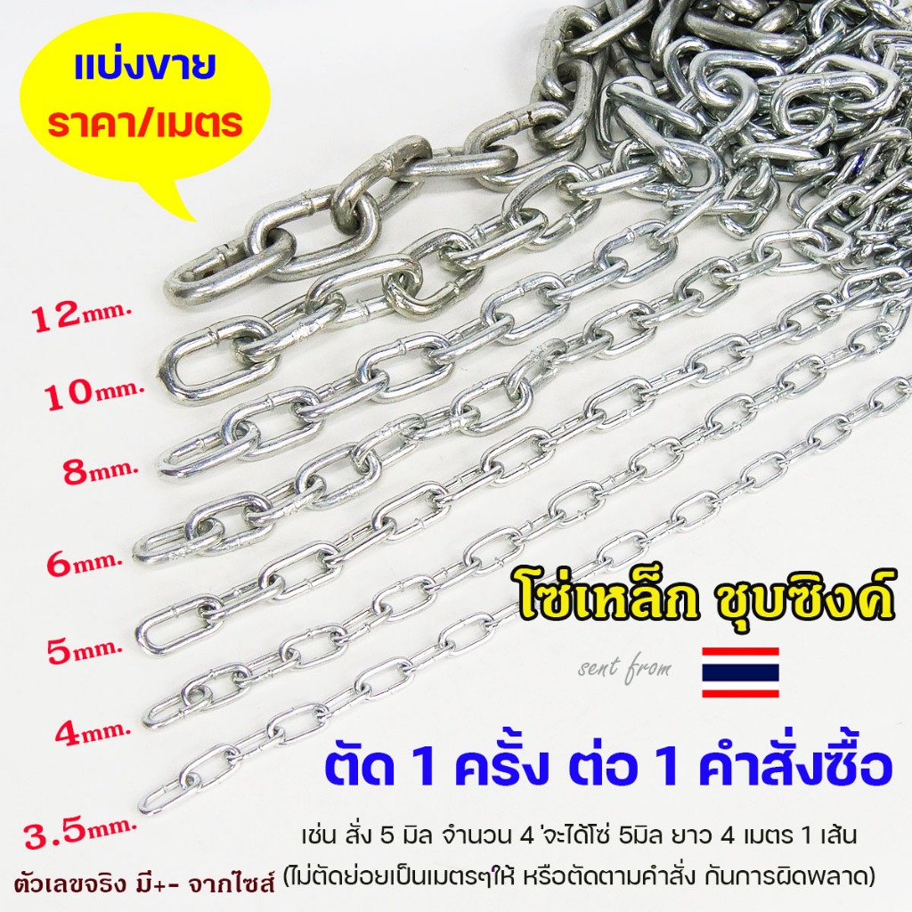 โซ่ ชุบซิงค์ ชุบขาว โซ่เหล็ก (ราคาต่อ 1 เมตร) ขนาด 3.5 - 8 มิล ร้านตัดเส้นยาว 1เส้น ตามจำนวนเมตรที่สั่ง เท่านั้นค่ะ