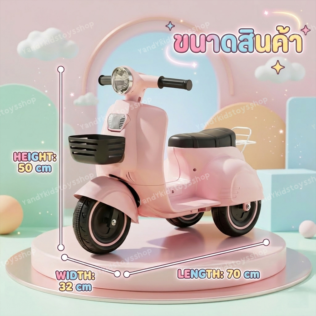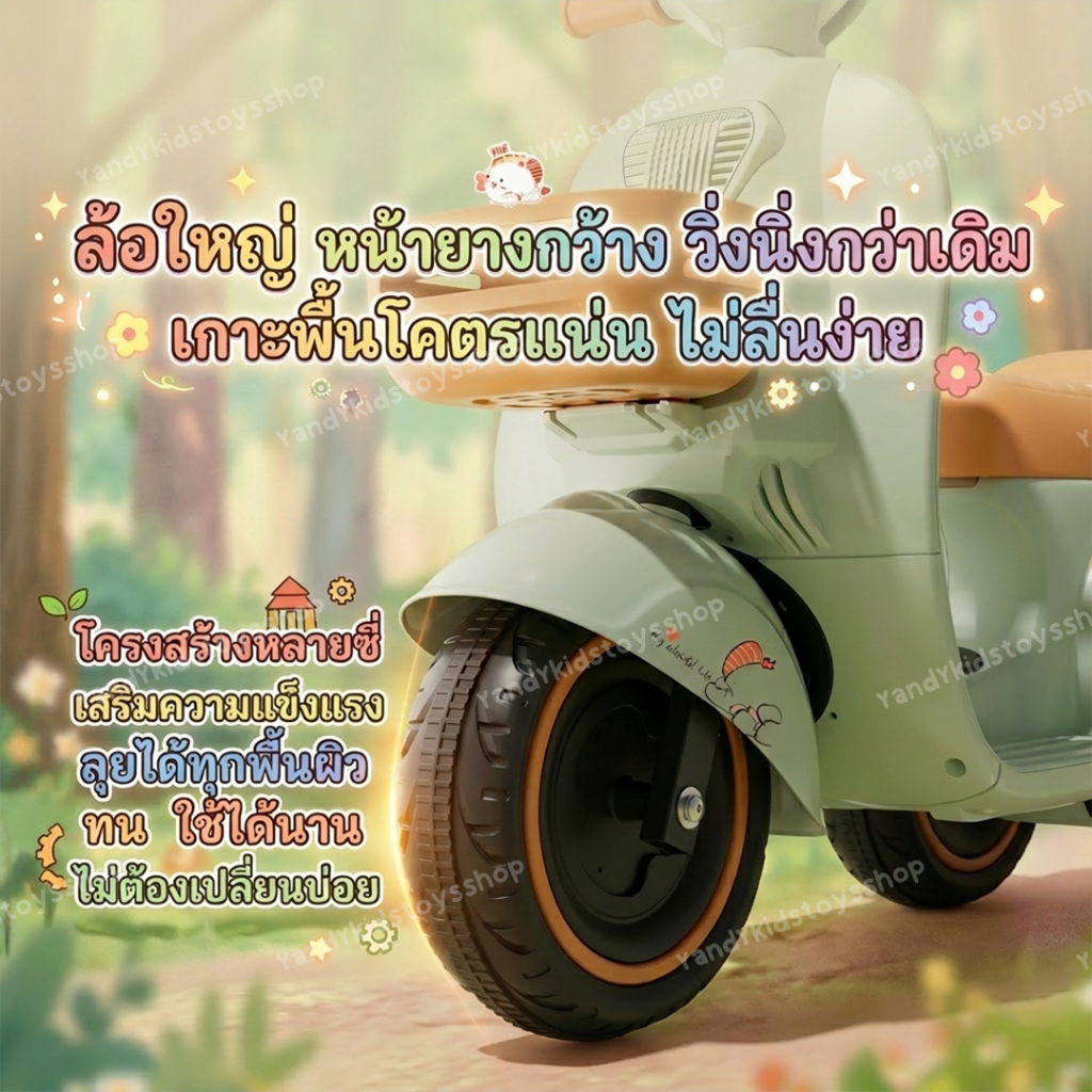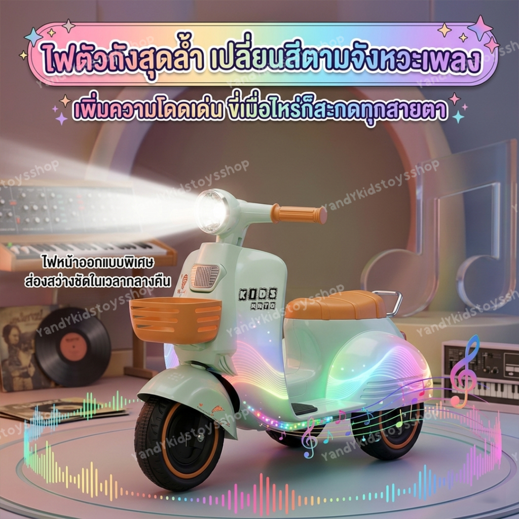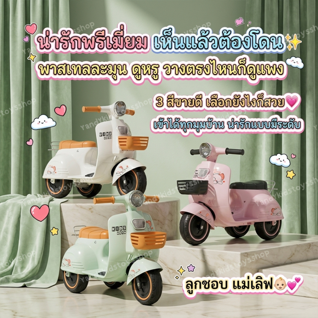 ⭐️Y&YToys Kids⭐ รถแบตเตอรี่เด็ก มอเตอร์ไซค์เด็กทรงเวสป้า มีบลูทูธบางรุ่น ขับได้จริง มีเพลง มีแสงไฟ