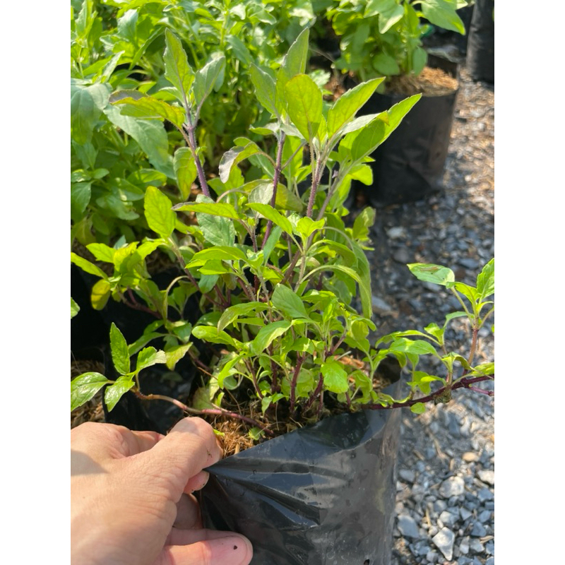 ต้นกะเพราแดง/กะเพราขาว ออร์แกนิค จัดส่งแบบถุงชำนะคะ. พร้อมลงดินปลูกจ้า