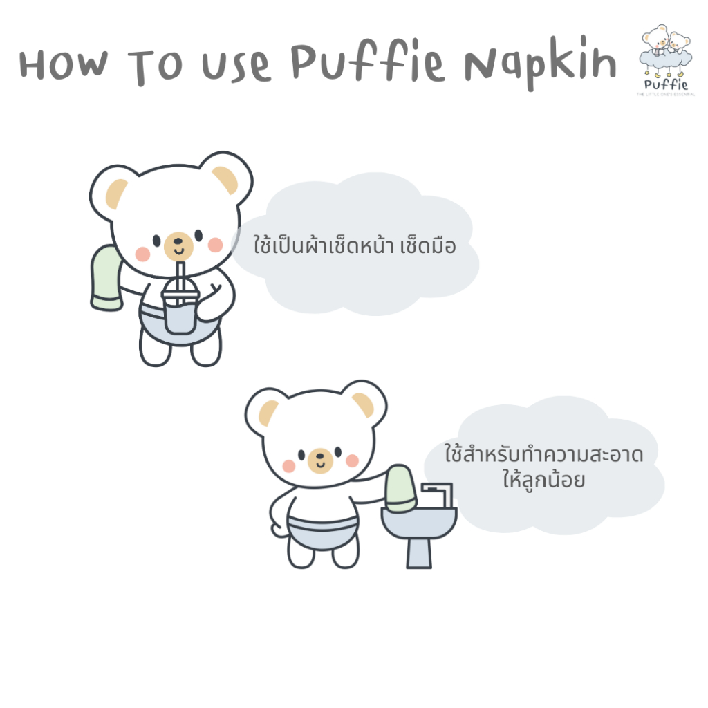 Puffie baby ผ้าเช็ดหน้า ผ้าเช็ดปากสำหรับเด็ก Napkin&Washcloth ขนาด 11×11" บรรจุ 5 ผืน