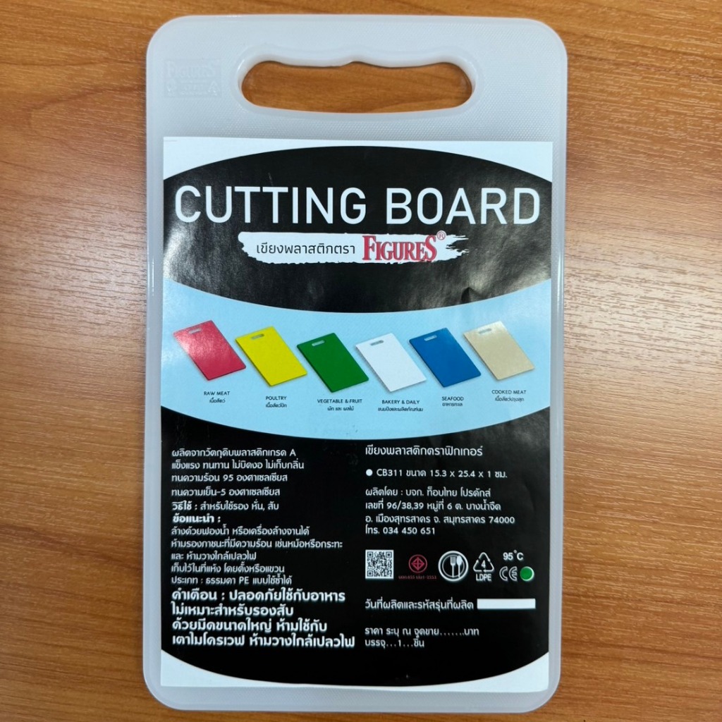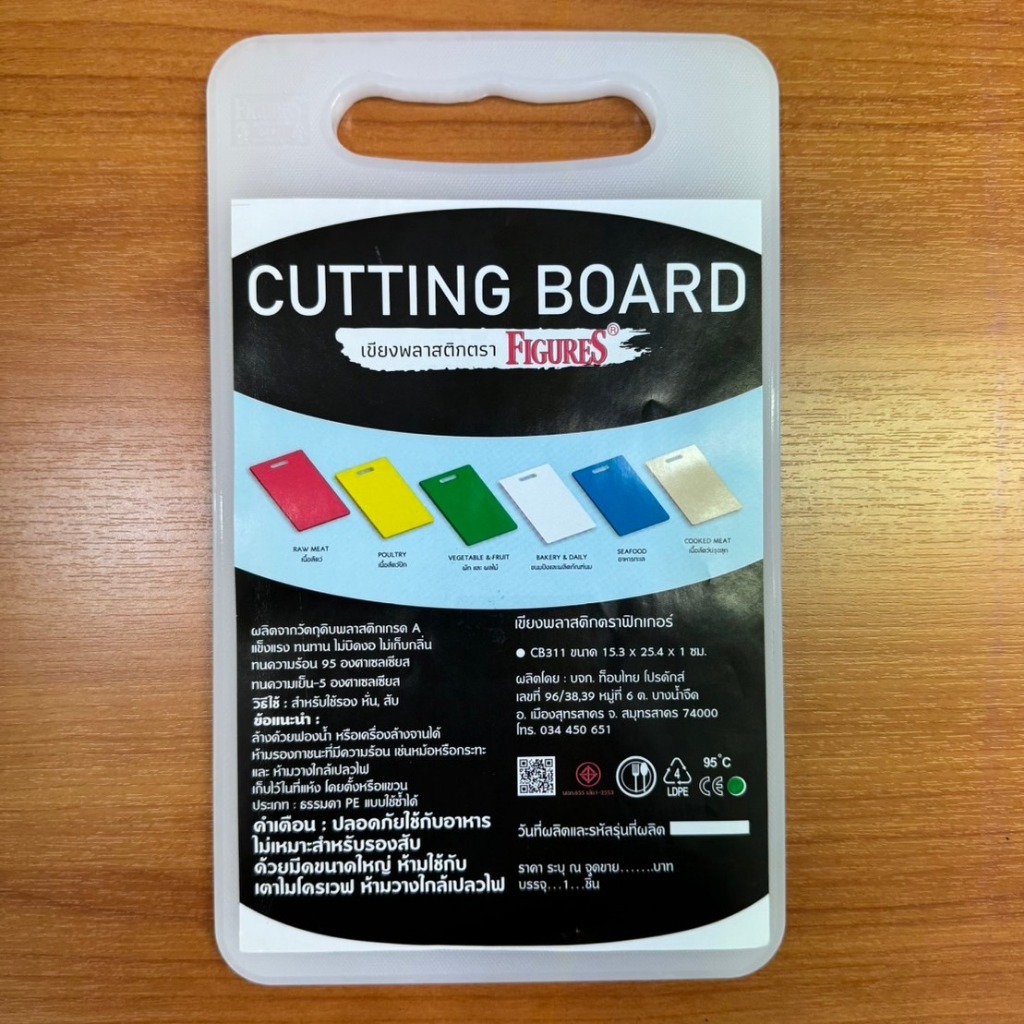Figure เขียงพลาสติกเล็ก เขียงขนาดเล็ก ทำจากพลาสติก Food Grade ขนาด 15.3x25.4 cm หนา 10 mm รุ่น CB311