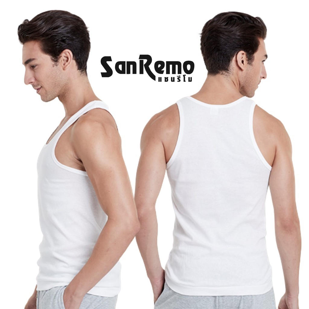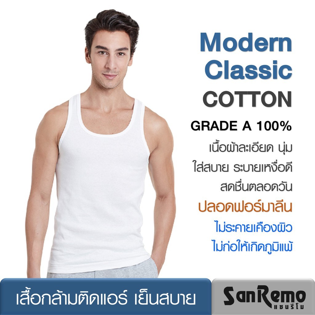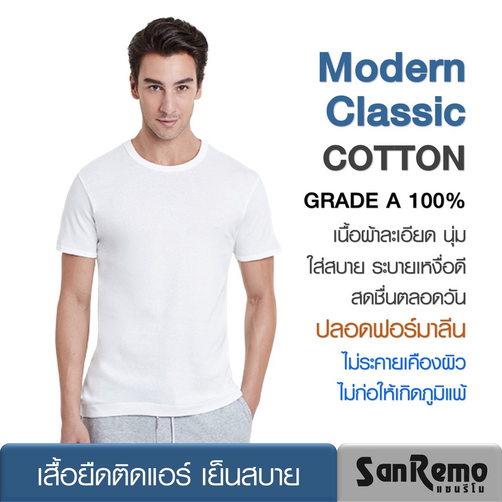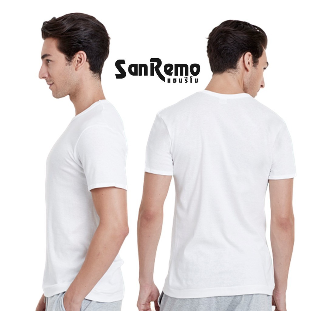 Sanremo เสื้อยืด ติดแอร์ แซนรีโม Modern Classic Cotton 100% ผ้านุ่ม เนื้อละเอียด ระบายเหงื่อดี สวมใส่สบาย NIS-SCT-WH