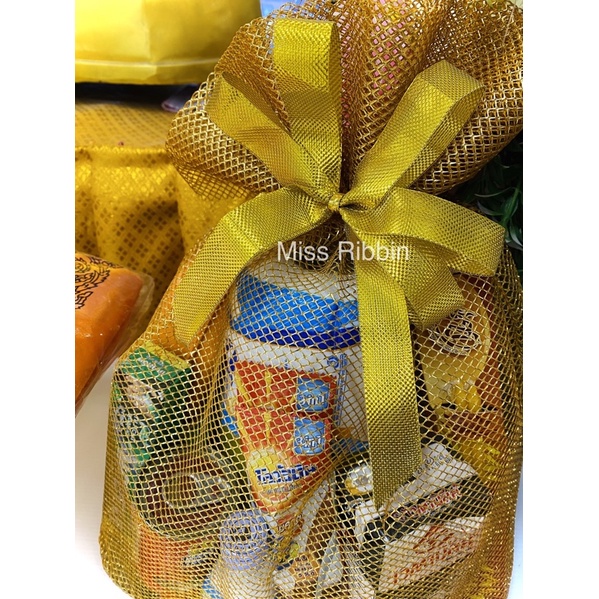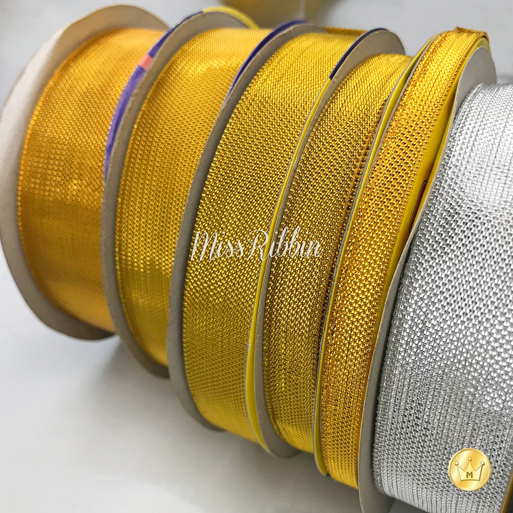 ริบบิ้นงานบวช ยกม้วน ทรายทอง เงินเลื่อม แต่งเทียนแพ สังฆทาน ริบบิ้นทองบาง