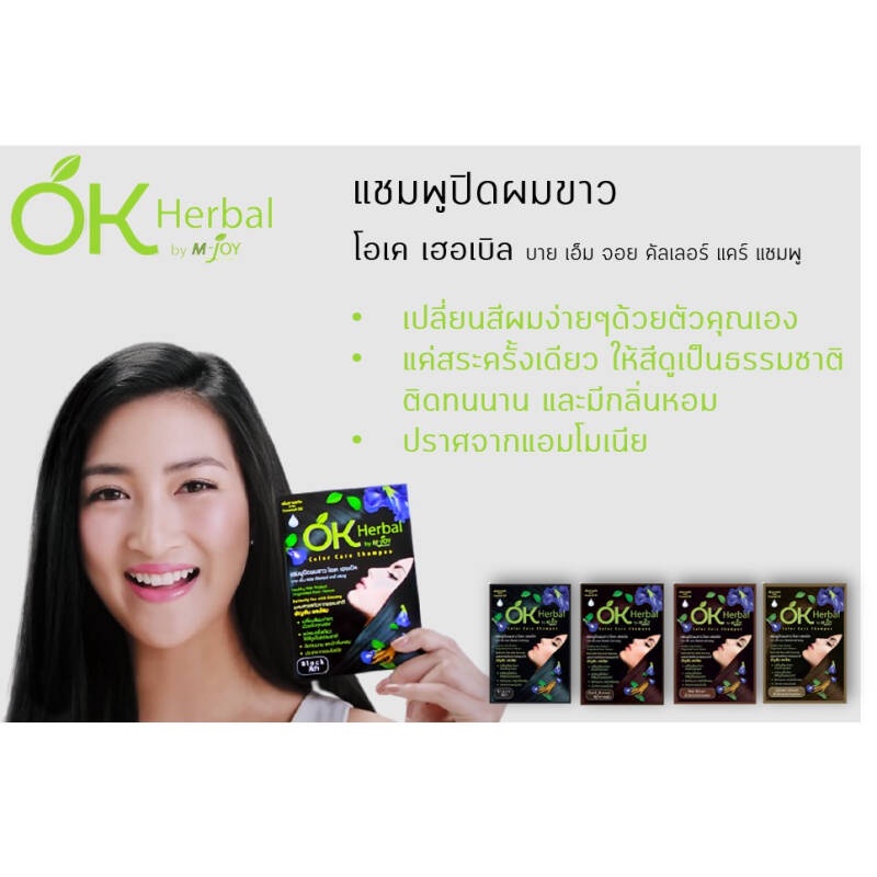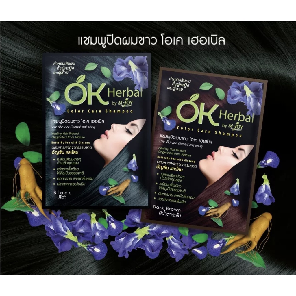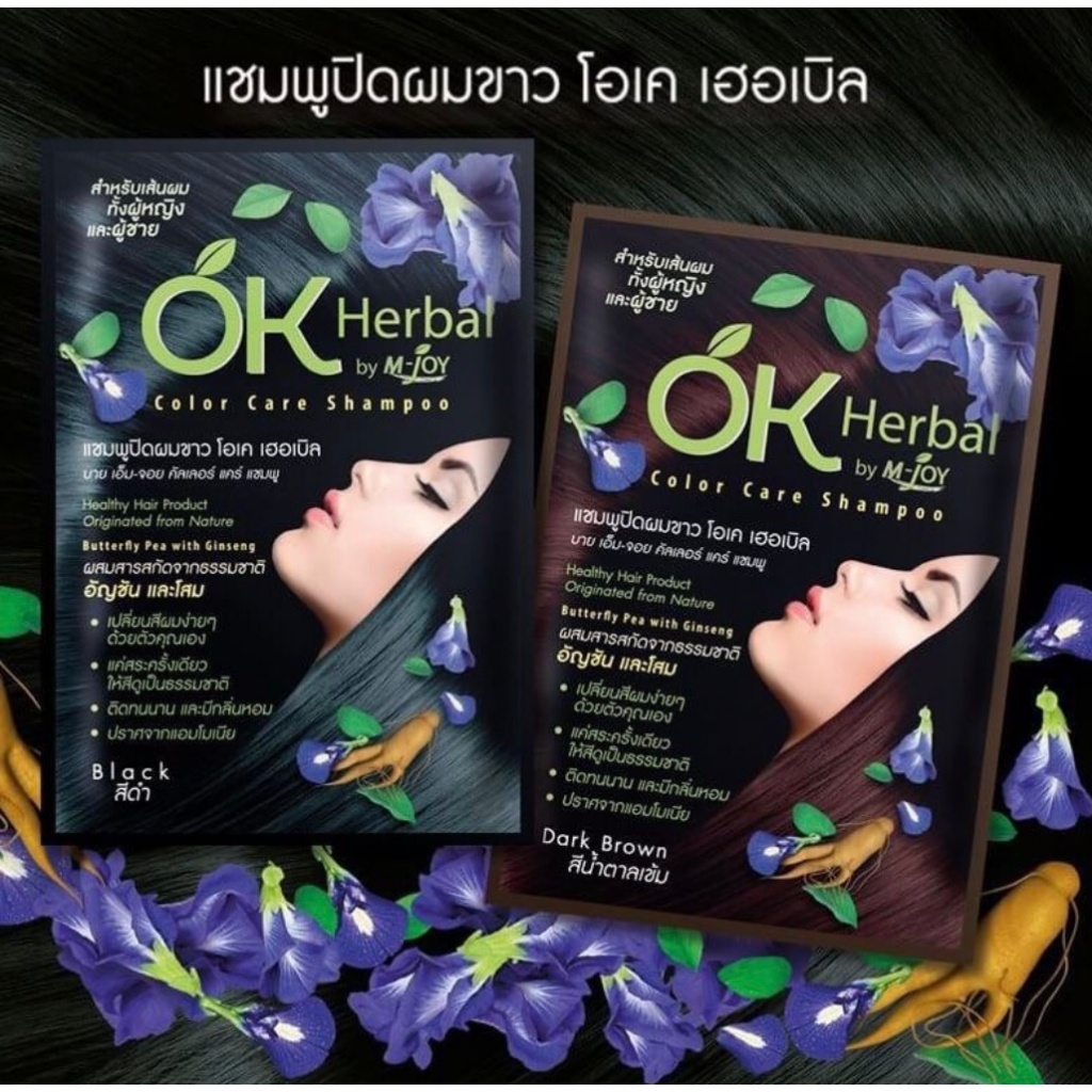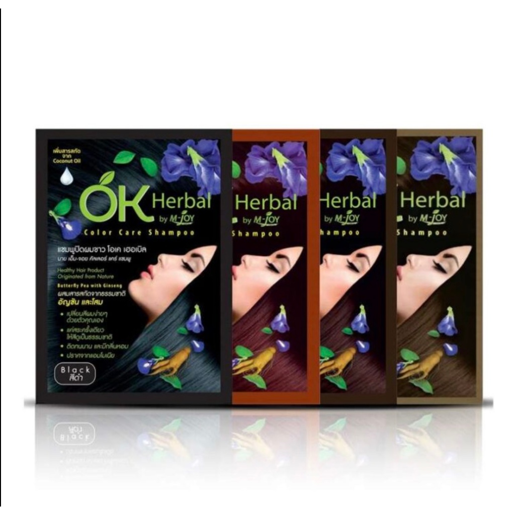 OK Herbal โอเค ของแท้ เป็นกล่องมีพลาสติกหุ้ม ปิดผมขาว สระดำ แชมพูเปลี่ยนสีผม