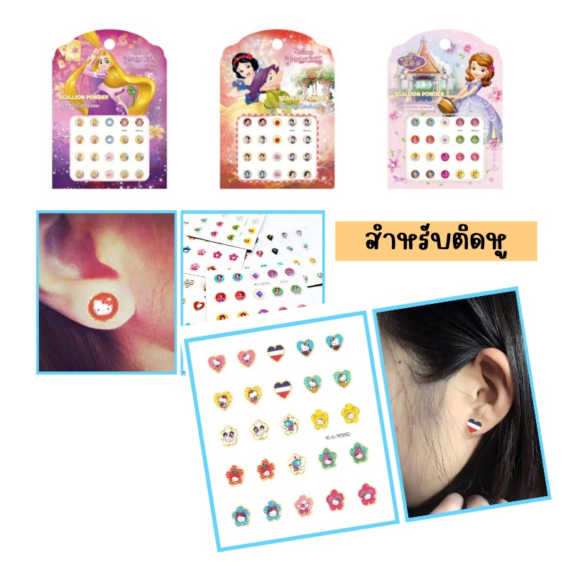 สติ๊กเกอร์ติดเล็บ (Toy28) - สติ๊กเกอร์ติดหู 3D ลายเจ้าหญิง Disney Princess สำหรับเด็ก