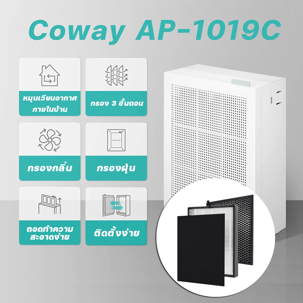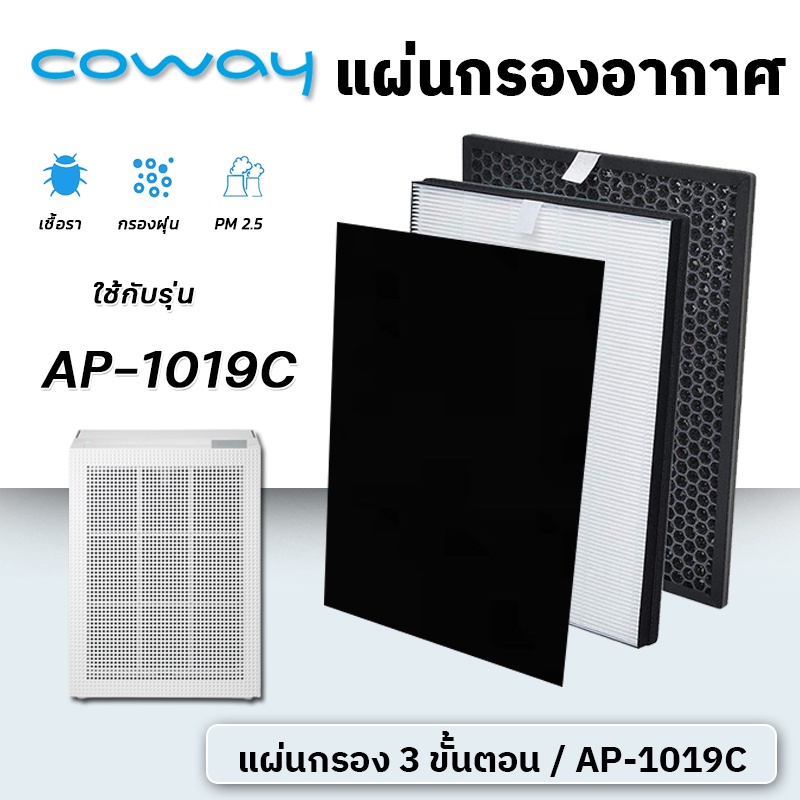 แผ่นกรองอากาศ Coway AP-1019C (แผ่น Pre-Filter + Hepa 1ชิ้น + Carbon 1ชิ้น)