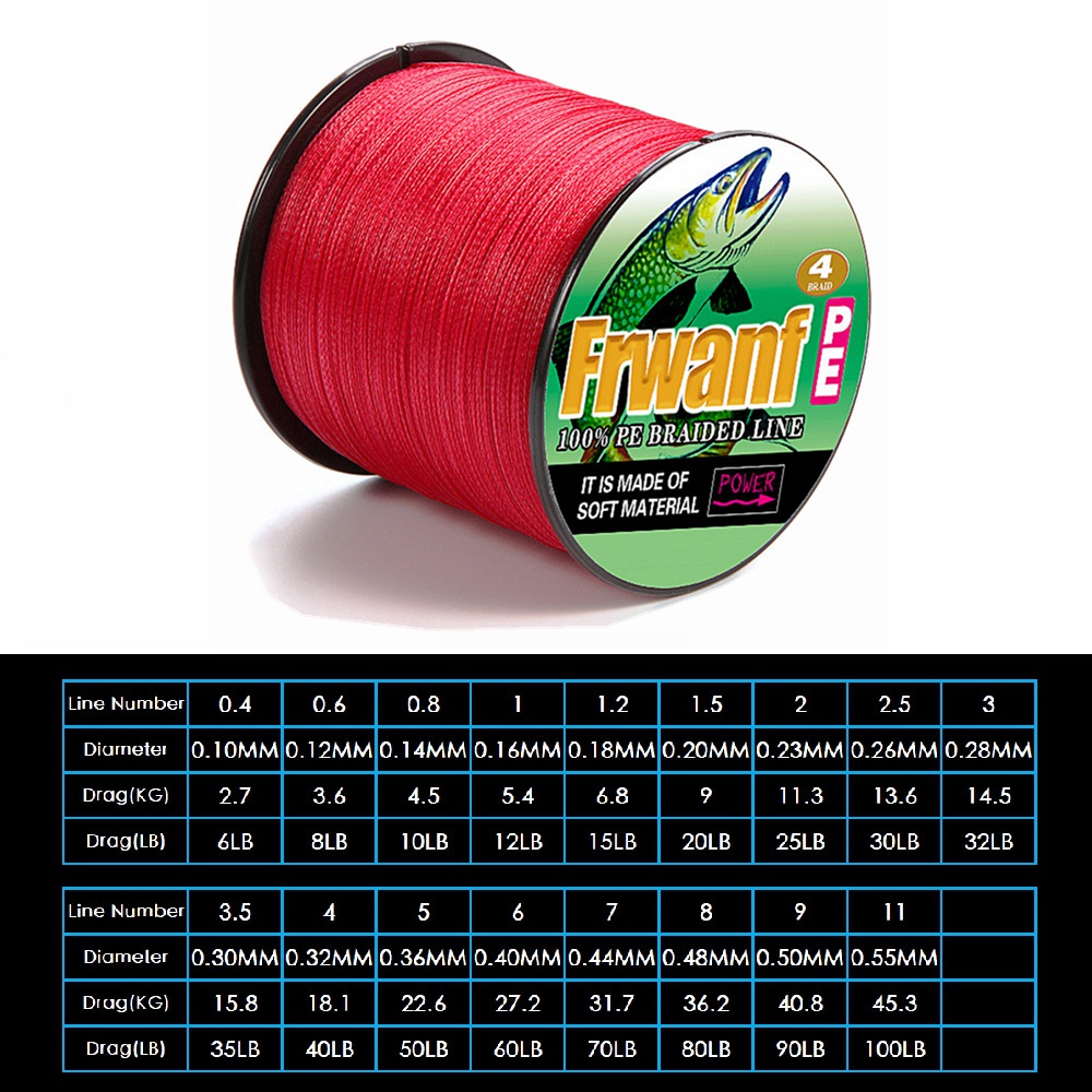 Frwanf สายเอ็นตกปลา PE แบบถัก ทนทาน 4 เส้น 100 เมตร สีแดง