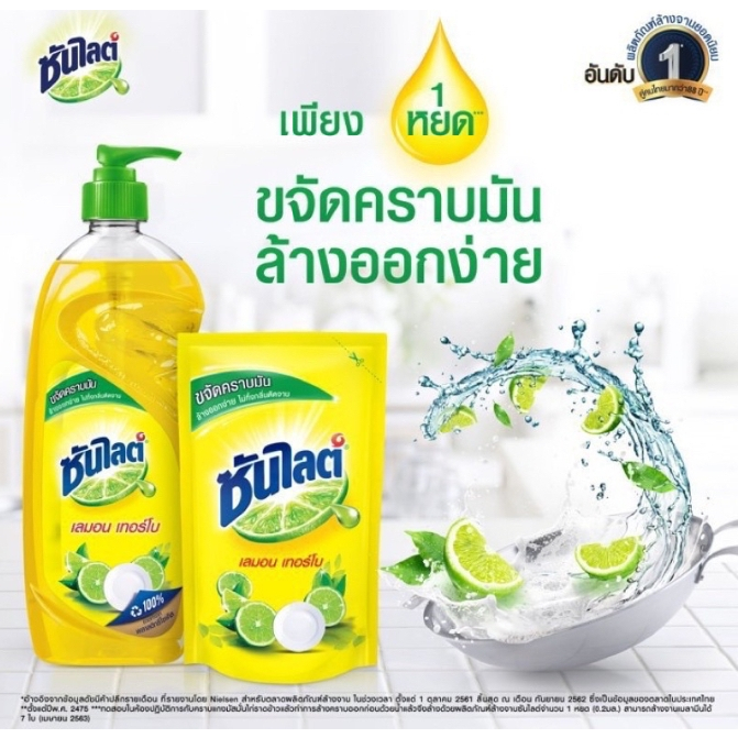 (แพ็ค 3 ถุง) น้ำยาล้างจาน ซันไลต์ น้ำยาล้างจาน เลมอนเทอร์โบ 300-500 มล. (เเพ็ค 3 ถุง)