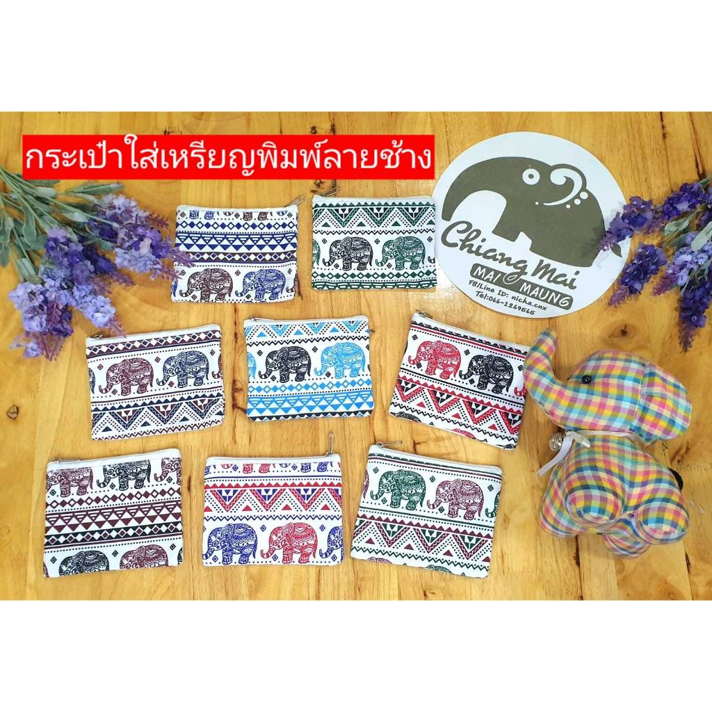 nicha.cnx กระเป๋าใส่เหรียญ พิมพ์ลายช้างน่ารักๆ กระเป๋าสตางค์ ของฝาก ของที่ระลึก ของชำร่วยงานมงคล พร้อมส่ง พร้อมส่ง ถูกๆ