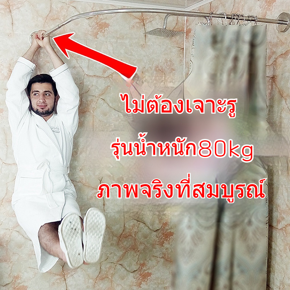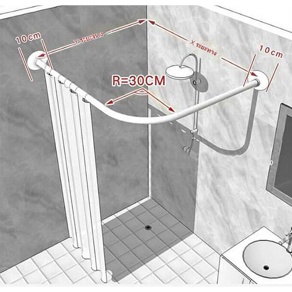 F2C ราวม่านห้องน้ำ แขวนผ้าม่าน ท่อสแตนเลสโค้ง