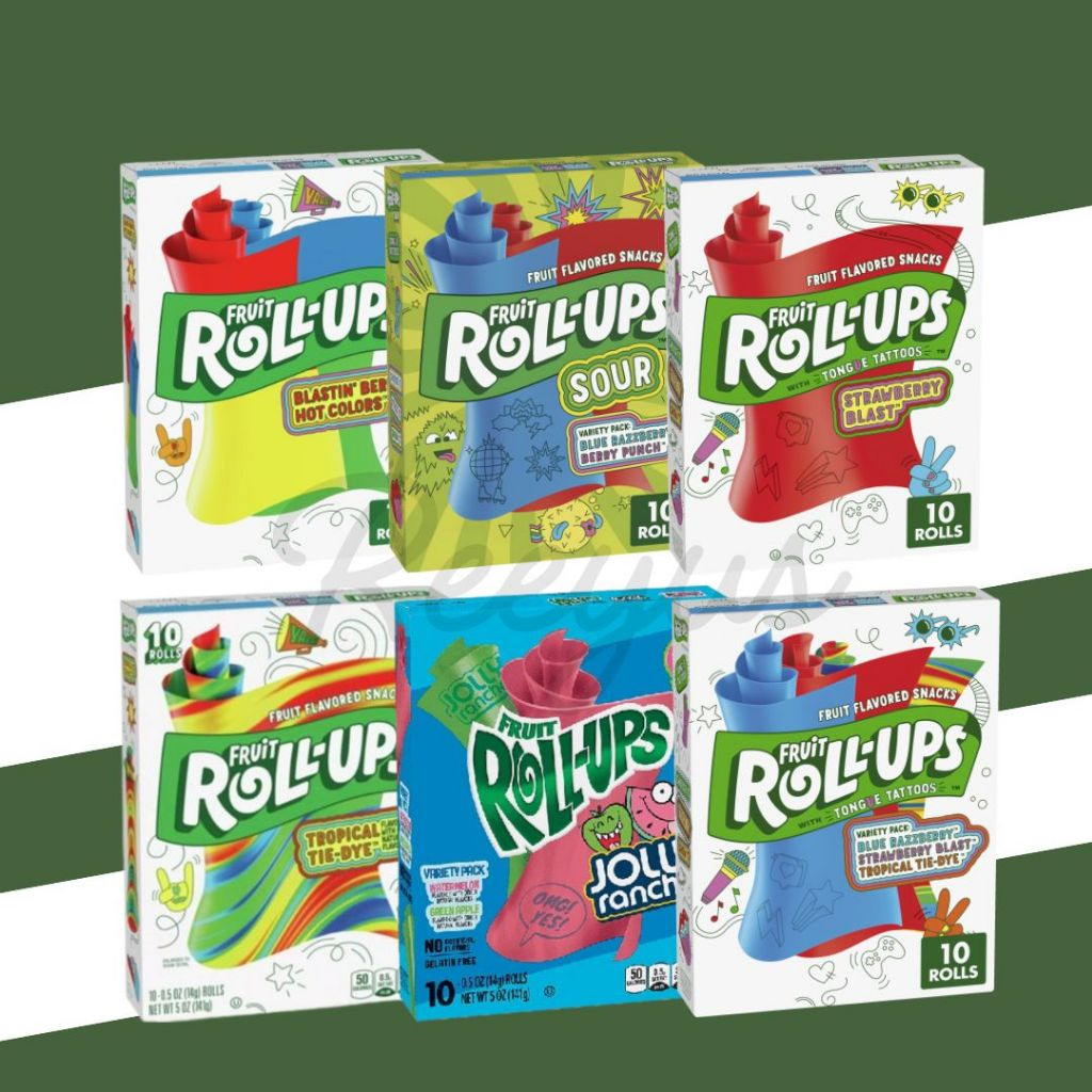 Fruit Roll-Ups with tongue tattoos 1กล่องจะมีประมาณ 10 ชิ้น น้ำหนัก 141 กรัม มี 7 รส จากสหรัฐอเมริกา