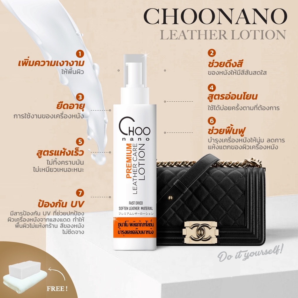 โลชั่นน้ำนมบำรุง เคลือบเงาหนัง ฟรี ผ้าไมโครไฟเบอร์ ฟองน้ำ (LMS)