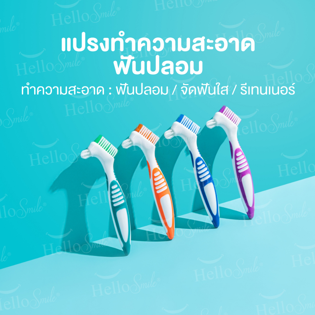 Hellosmile Denture brush แปรงฟันปลอม แปรงขนนุ่ม ทำความสะอาด ฟันปลอม ช่องปาก ด้ามจับถนัดมือ