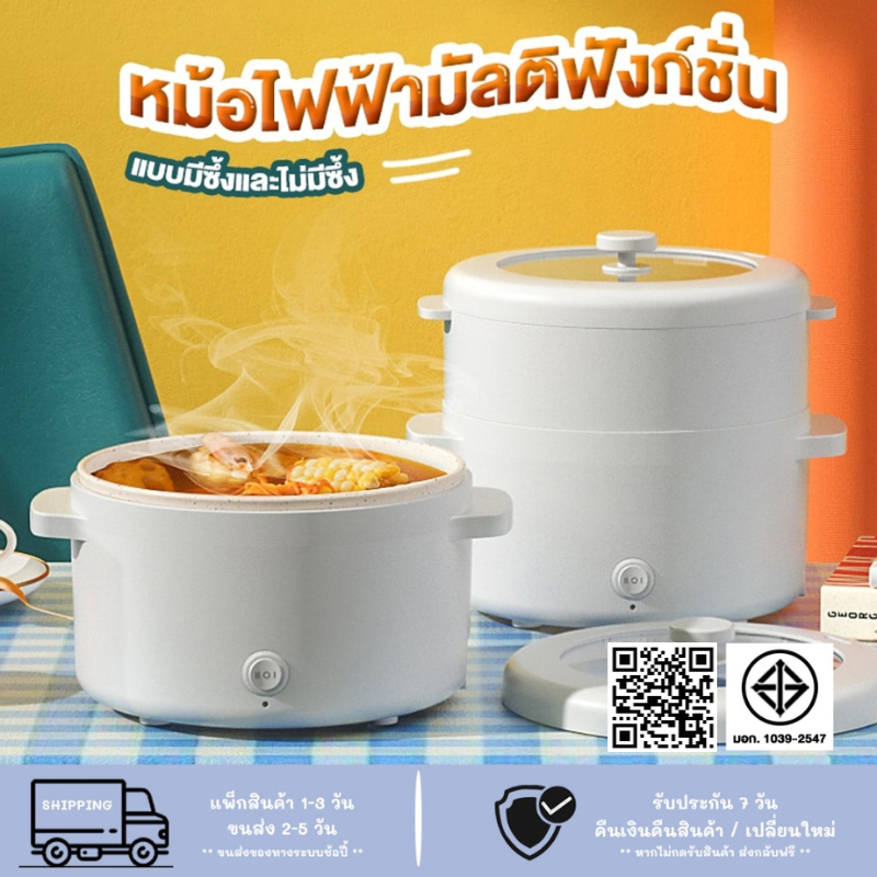 พร้อมส่ง หม้อไฟฟ้า 2 ลิตร ทอด ตุ๋น ต้ม นึ่่งอเนกประสงค์ หม้อเคลือบไม่มีโลโก้ มัลติฟังก์ชัน