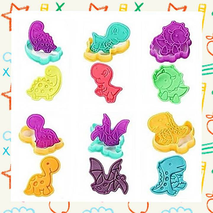 พิมพ์ไดโนเสาร์ แบบปั้๊ม+ไดคัท 16 ชิ้น แม่พิมพ์แป้งโดว์-ดินน้ำมัน
