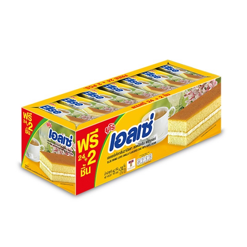 ยกกล่อง เอลเซ่ Ellse เลเยอร์เค้ก สอดไส้ครีม ใบเตย วานิลา ช็อคโกแลต สตรอเบอร์รี่ กล้วยหอม แยม หอมนุ่ม