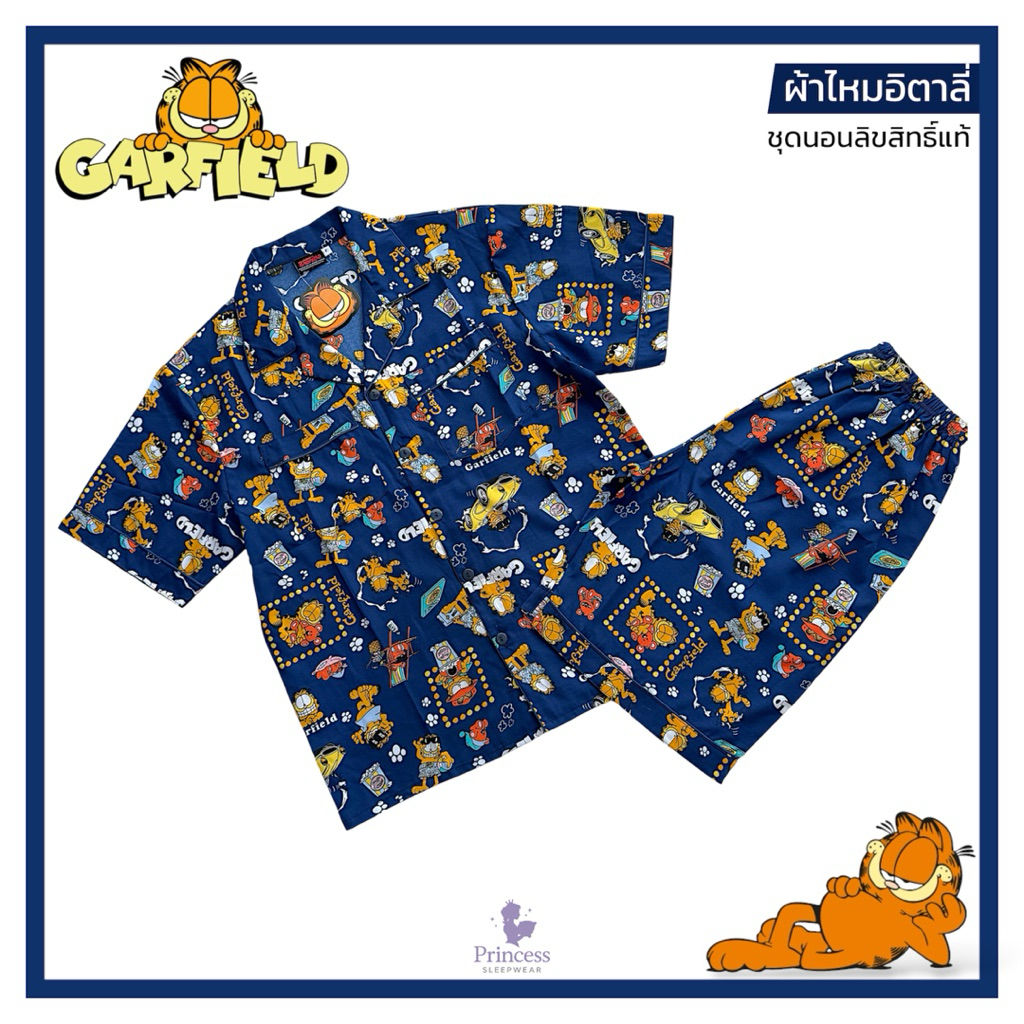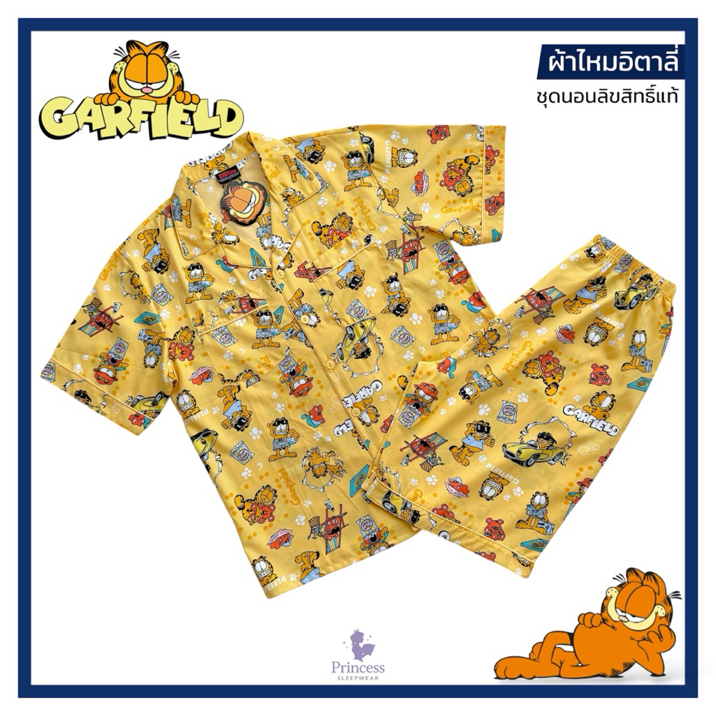 ชุดนอน การ์ฟิลด์ Garfield ผ้าไหมอิตาลี่ รอบอก 44“|48”|54“ ลิขสิทธิ์แท้ ผ้าโปร่งลื่น เบาสบาย กระเป๋าคู่!